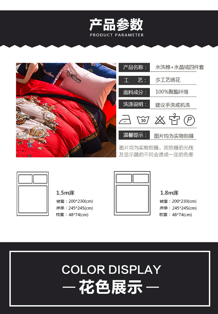 商品名称:芃成家纺 磨毛水洗棉平网印花拼水晶绒四件套静美