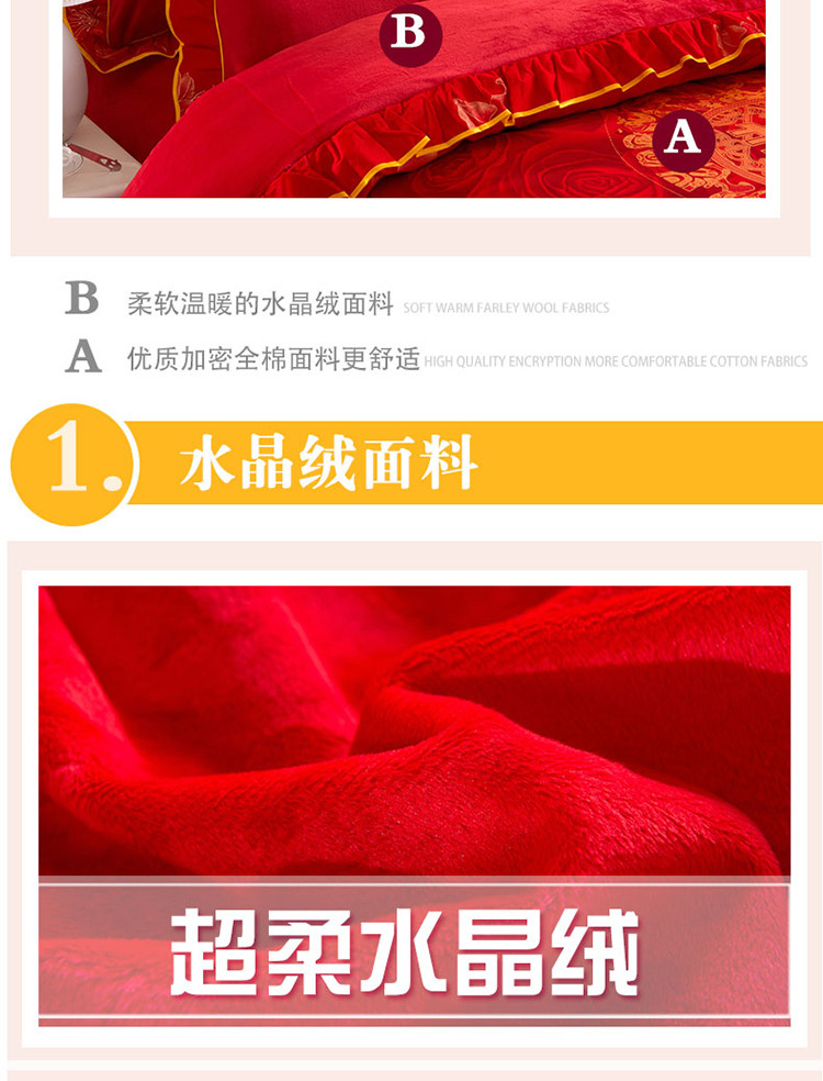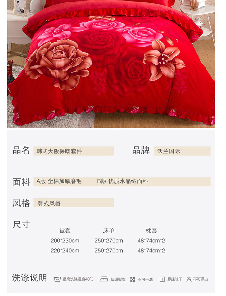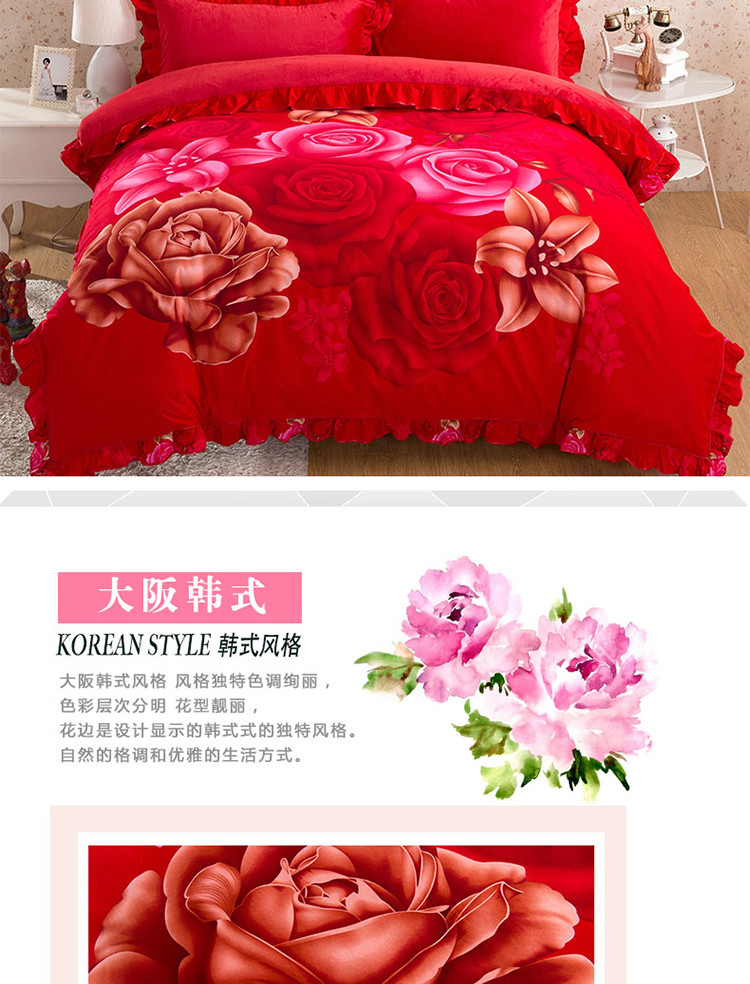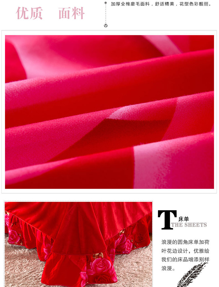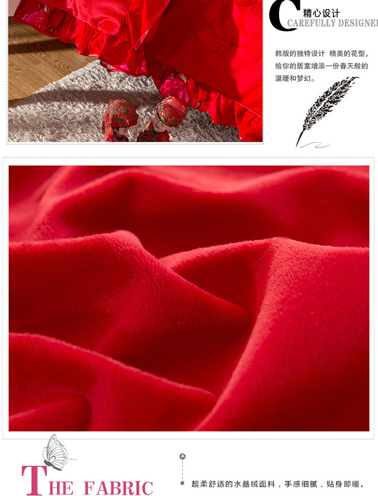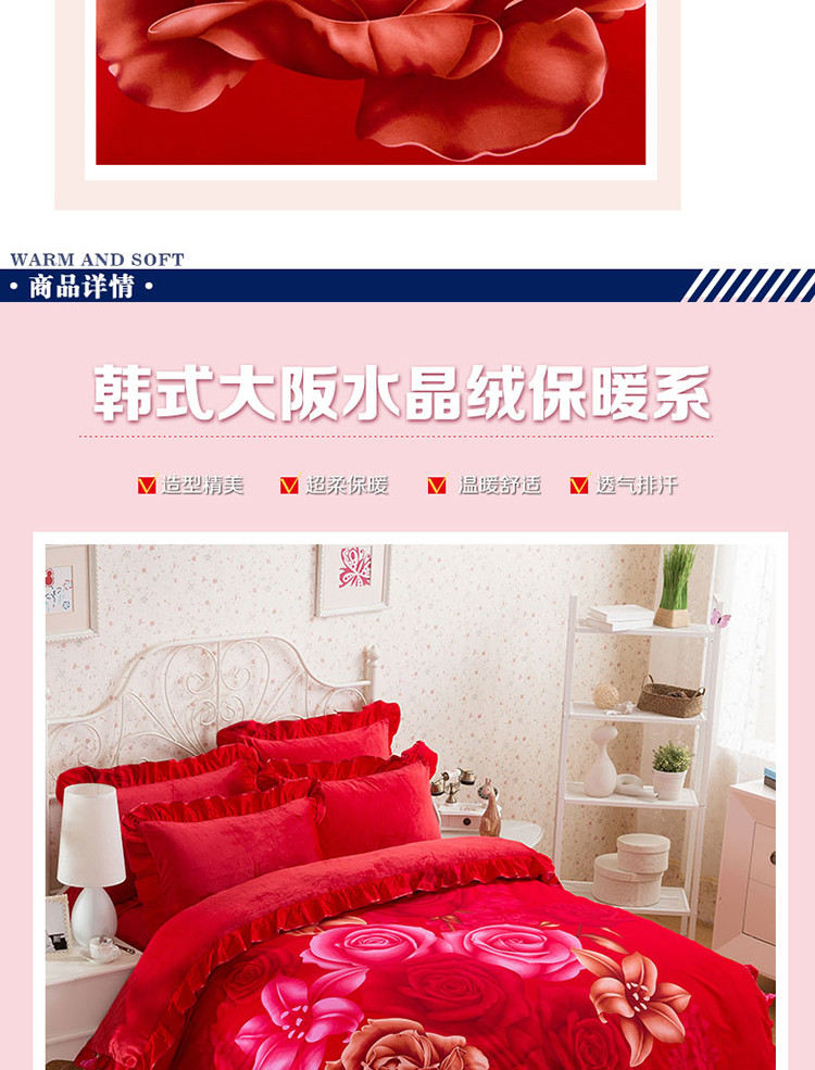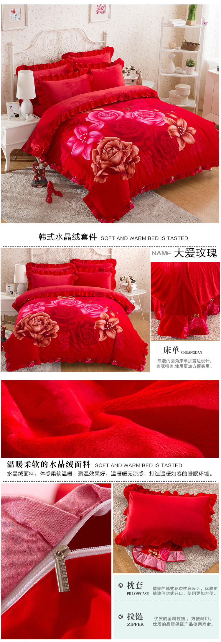 商品名称:意尚风情 0920 韩版磨毛加厚 水晶绒四件套大爱玫瑰