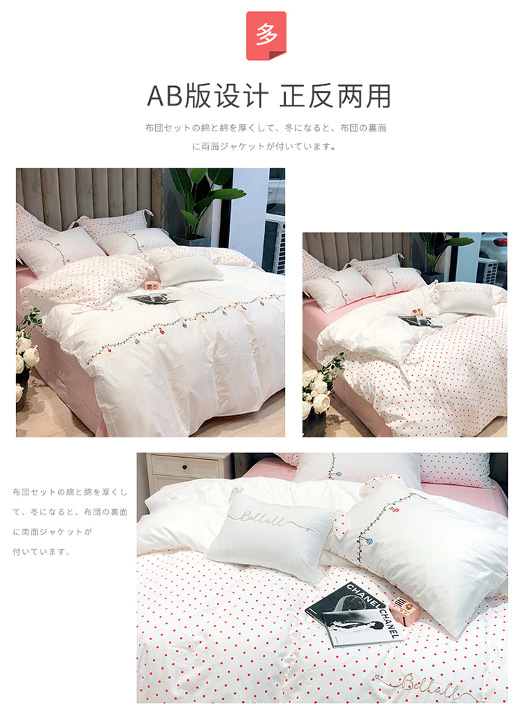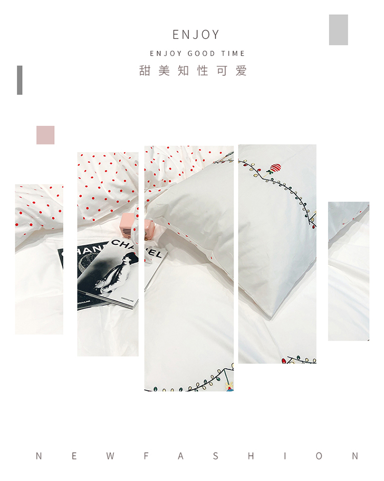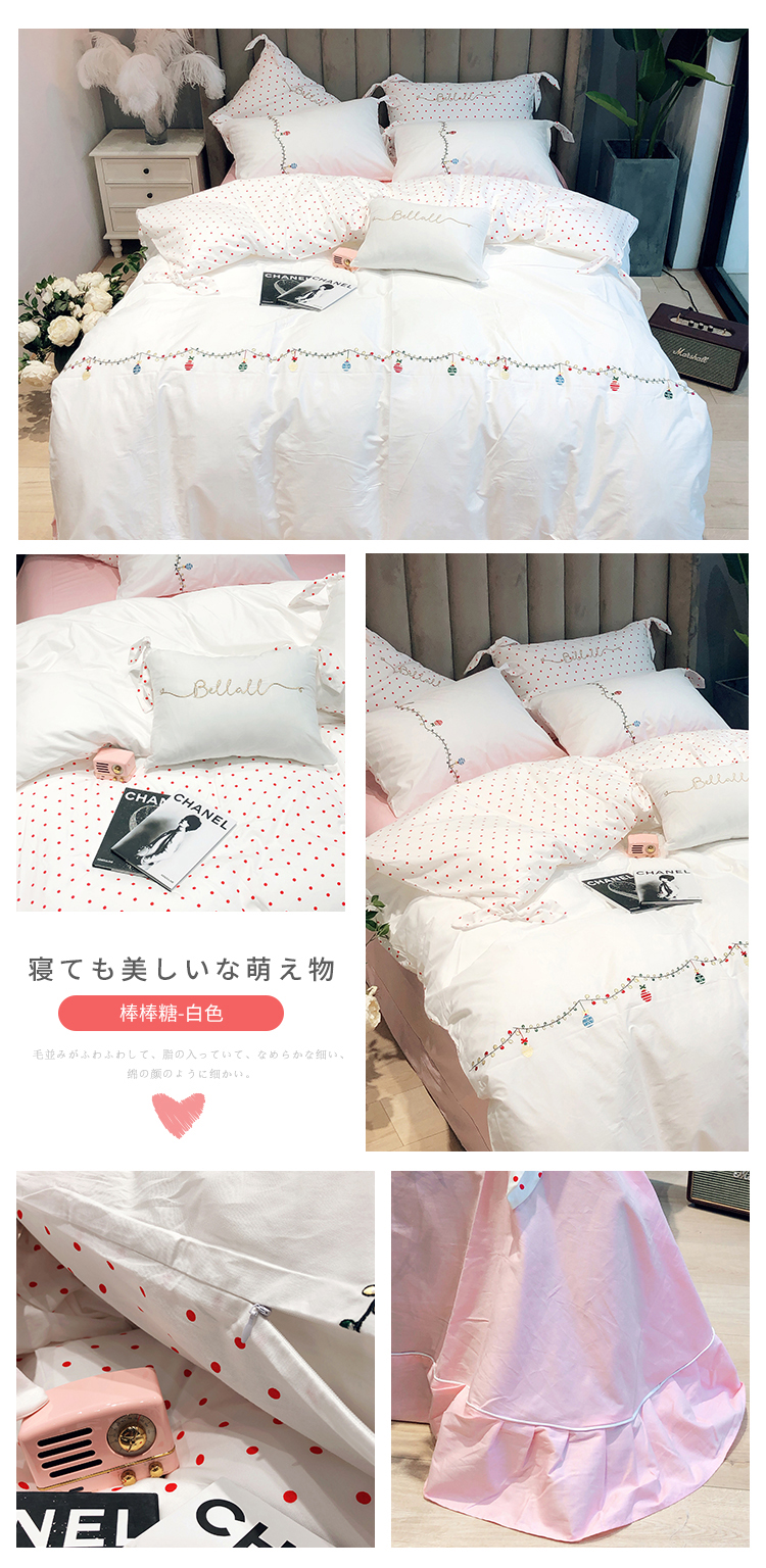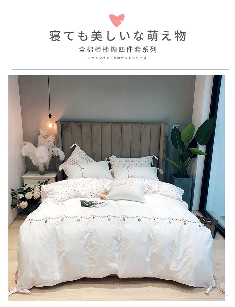 桔子家纺 2019纯棉四件套棒棒糖系列 白