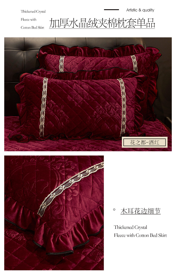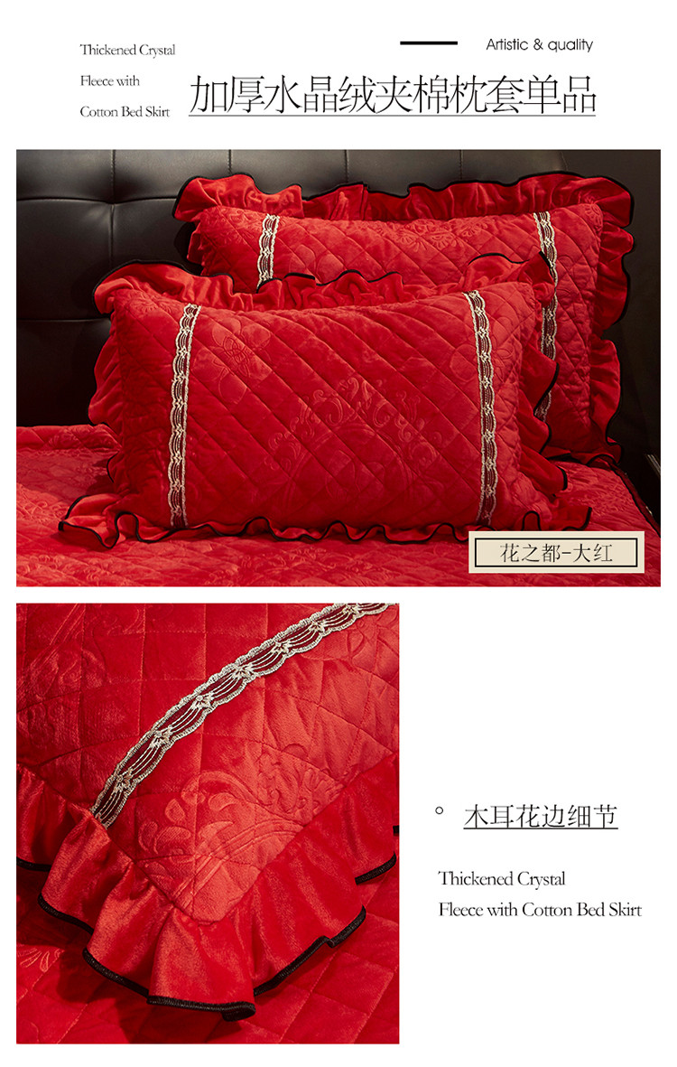 (总)宜凡家纺 2019新款水晶绒夹棉床裙枕套
