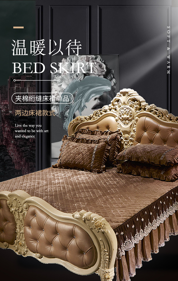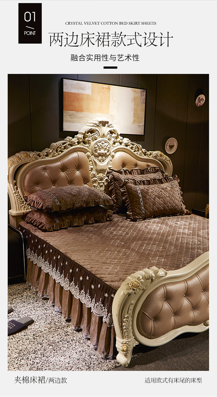 宜凡家纺 2019新款水晶绒夹棉床裙两边 花之都-咖啡