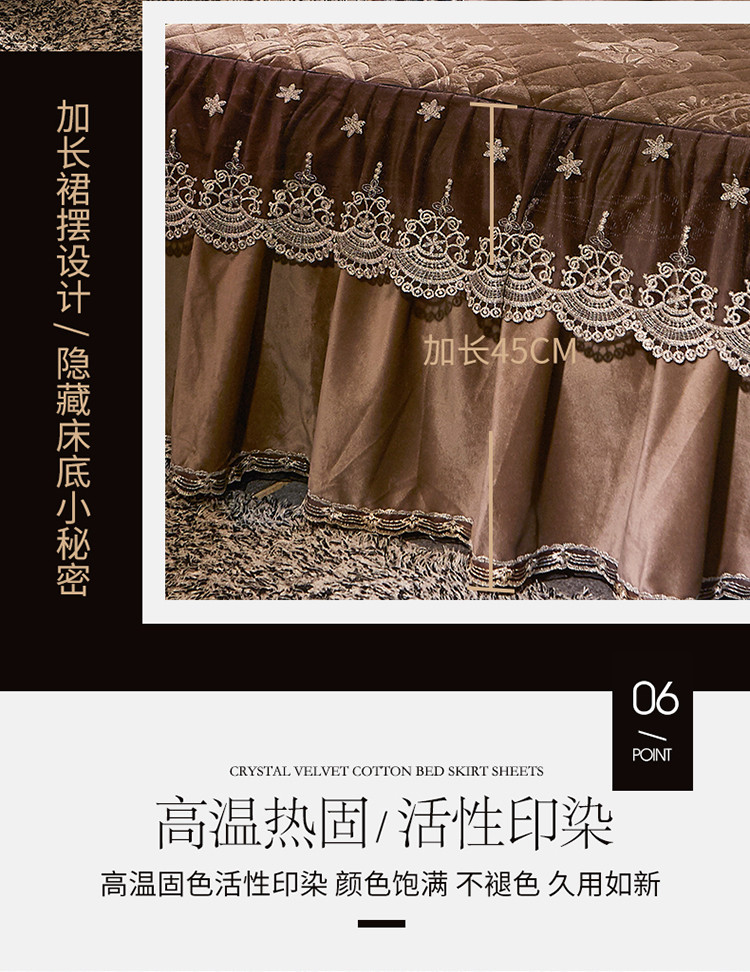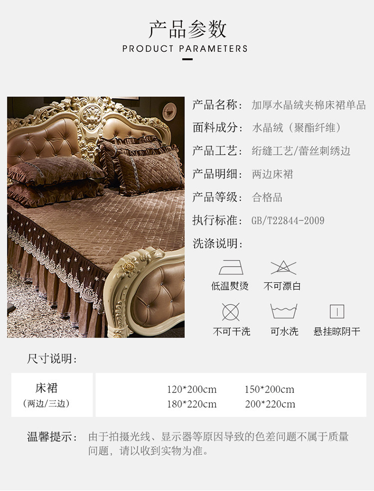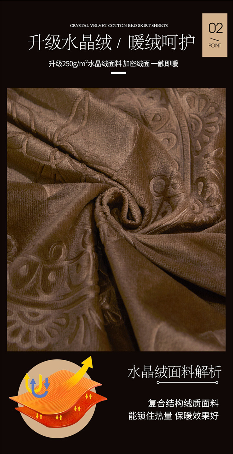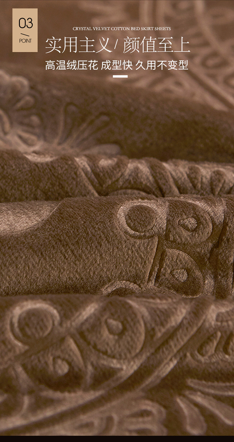 商品名称:宜凡家纺 2019新款水晶绒夹棉床裙两边 花之都-咖啡