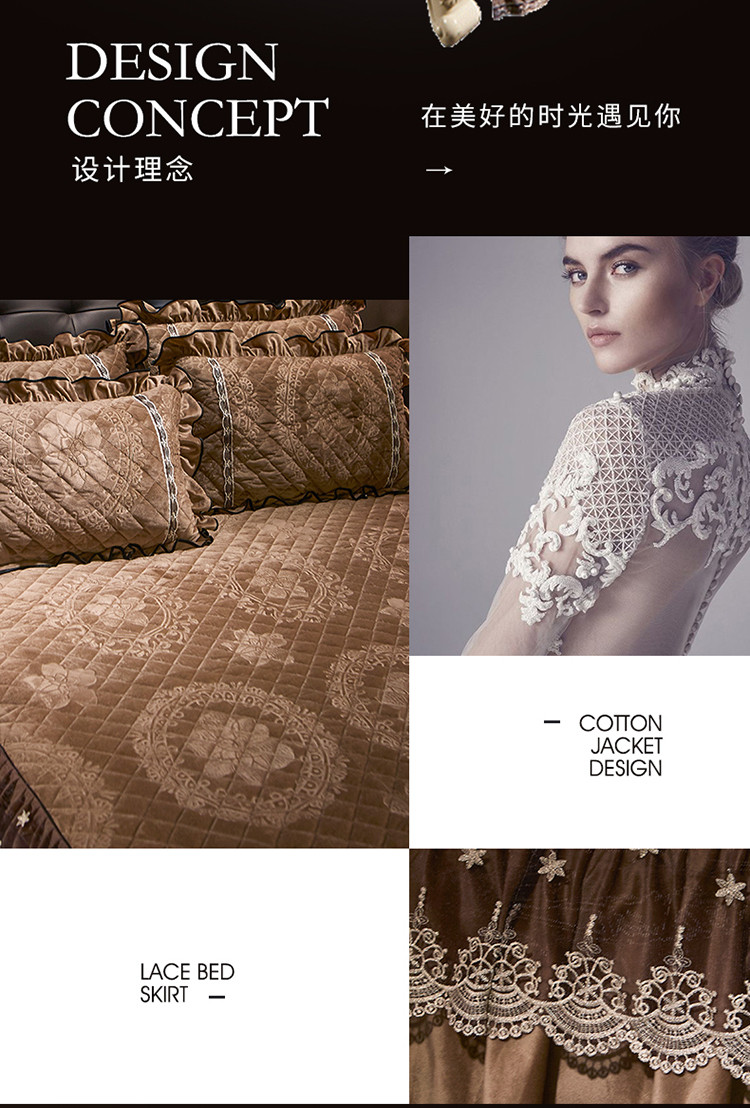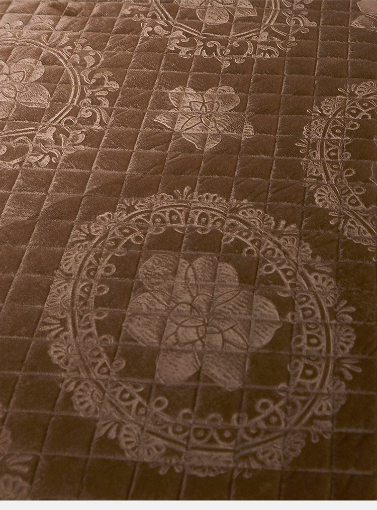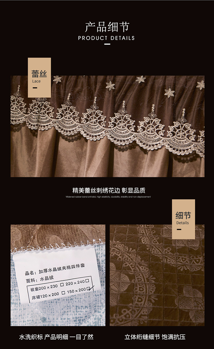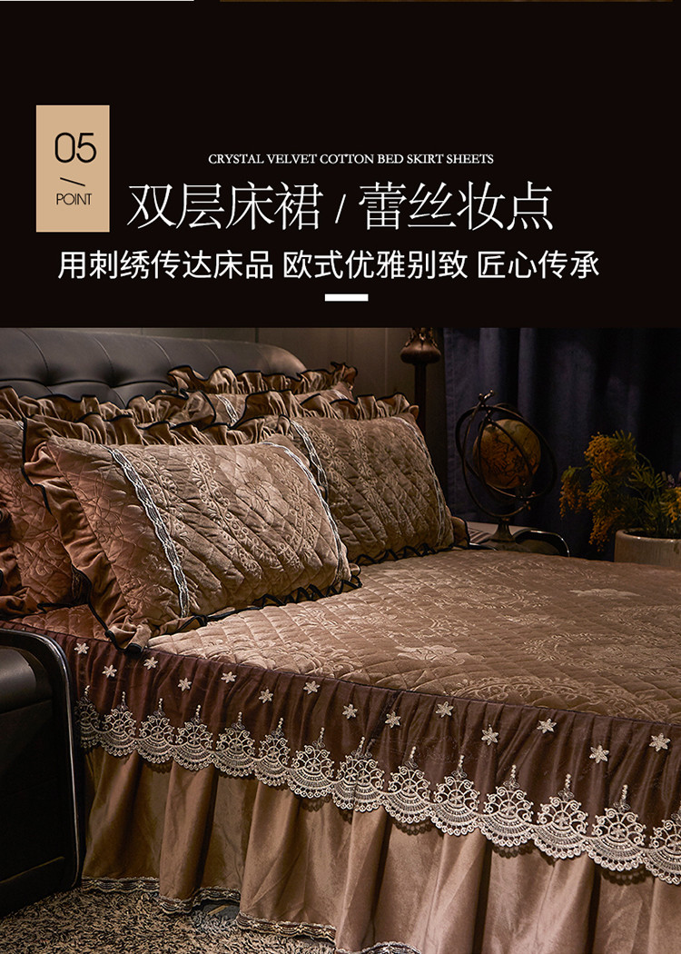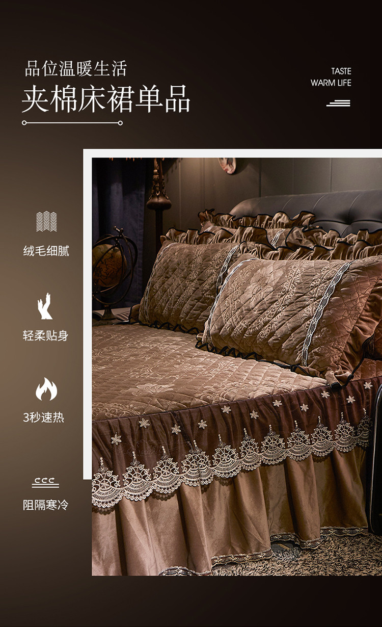 商品名称:宜凡家纺 2019新款水晶绒夹棉床裙两边 花之都-咖啡
