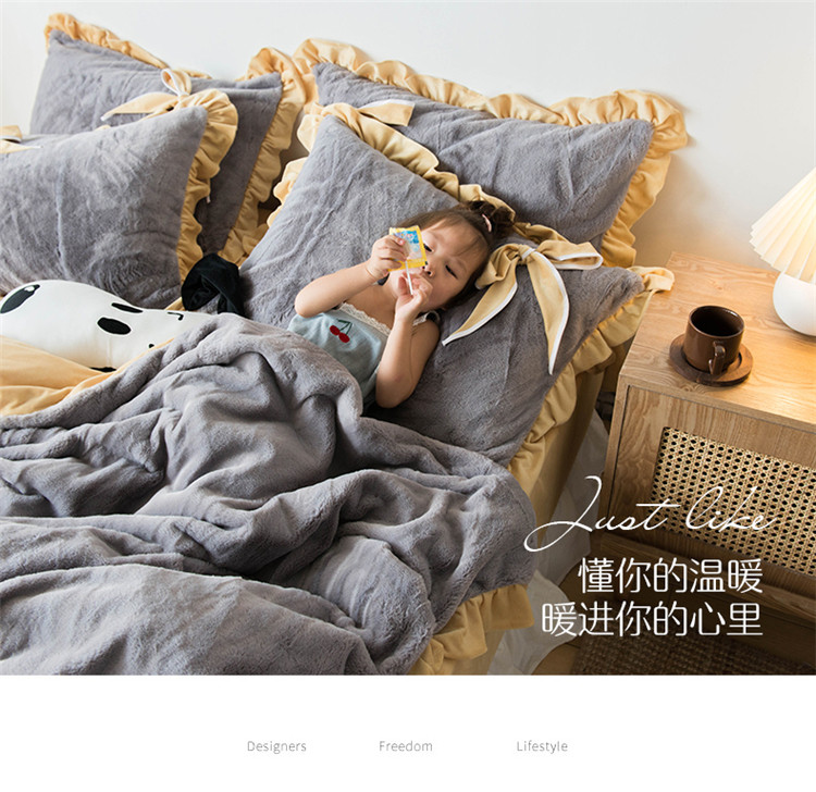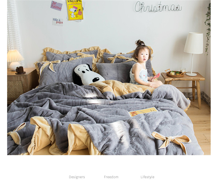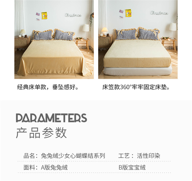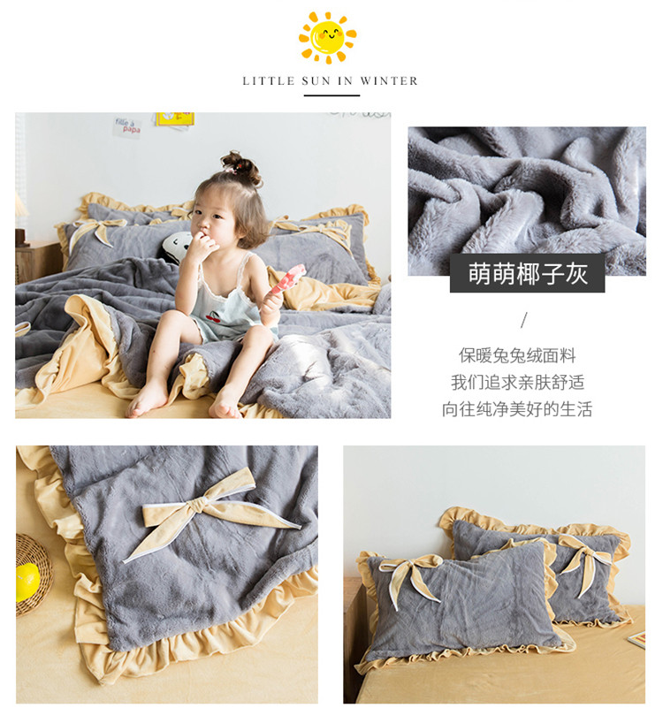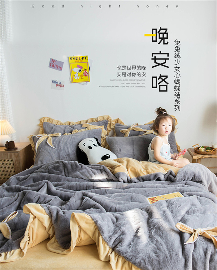 商品名称:北纬27度 韩国兔兔绒少女心蝴蝶结四件套 萌萌椰子灰
