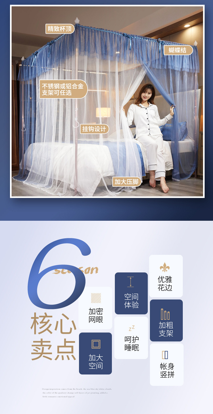 当前位置: 91家纺网 > 商品网购 > 床上用品 > 蚊帐 > 宫廷蚊帐 > 海虹蚊帐 2020新款8865款竖拼落地式蚊帐 蓝绿S