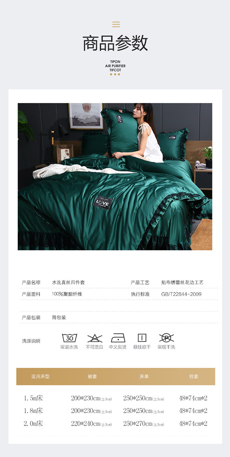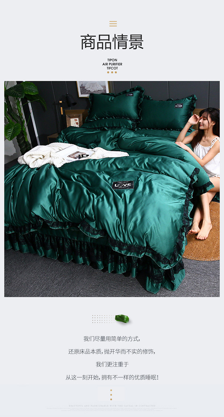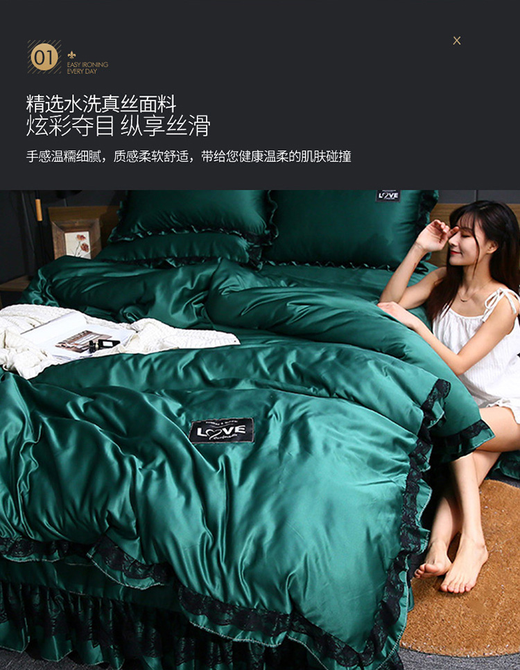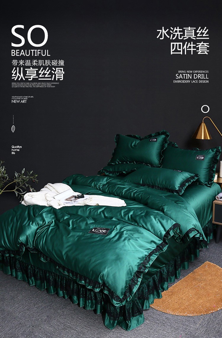 商品名称:铠畅 2020新款水洗真丝四件套 莫妮卡 墨绿