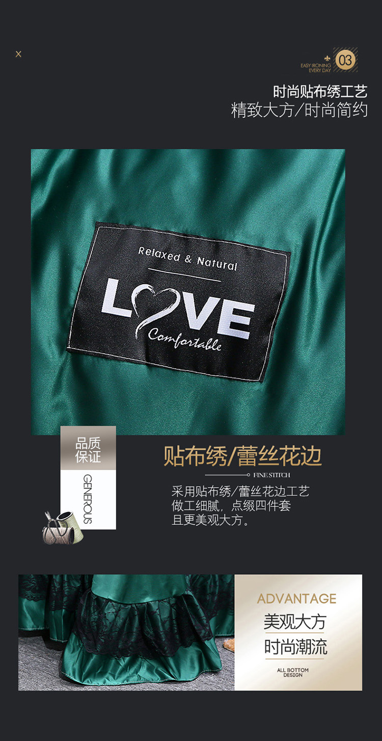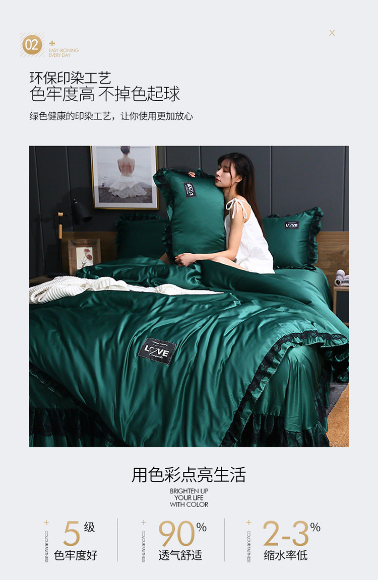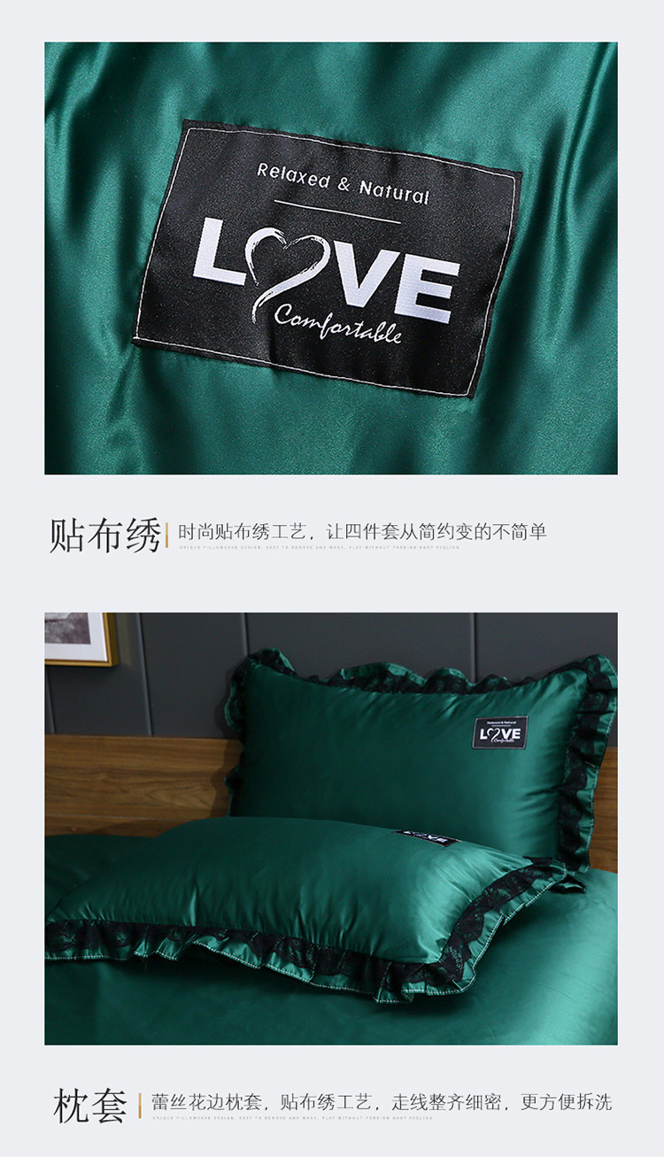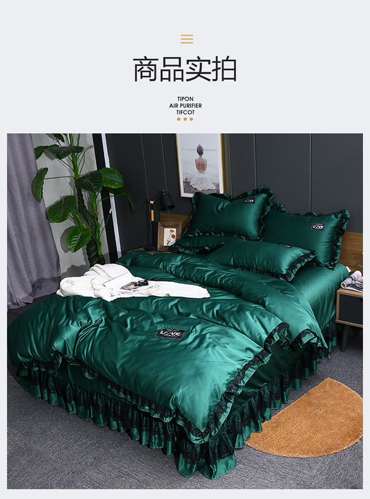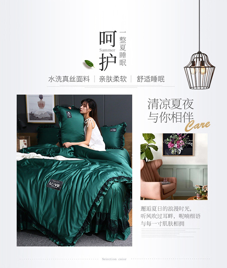 商品名称:铠畅 2020新款水洗真丝四件套 莫妮卡 墨绿