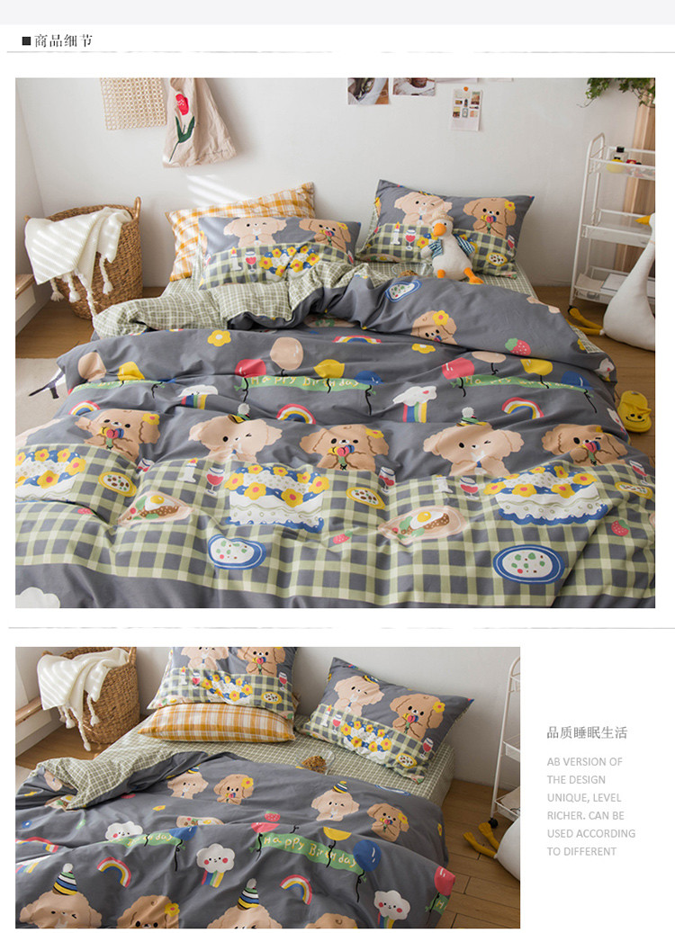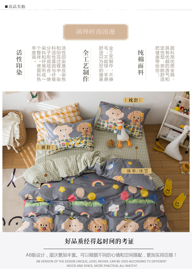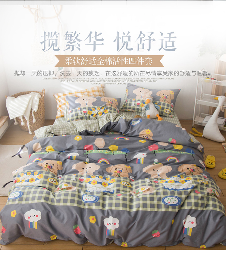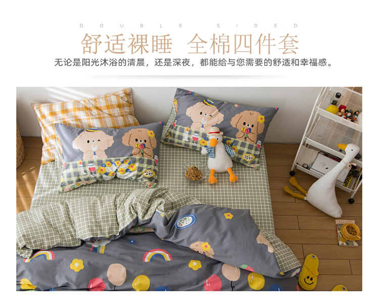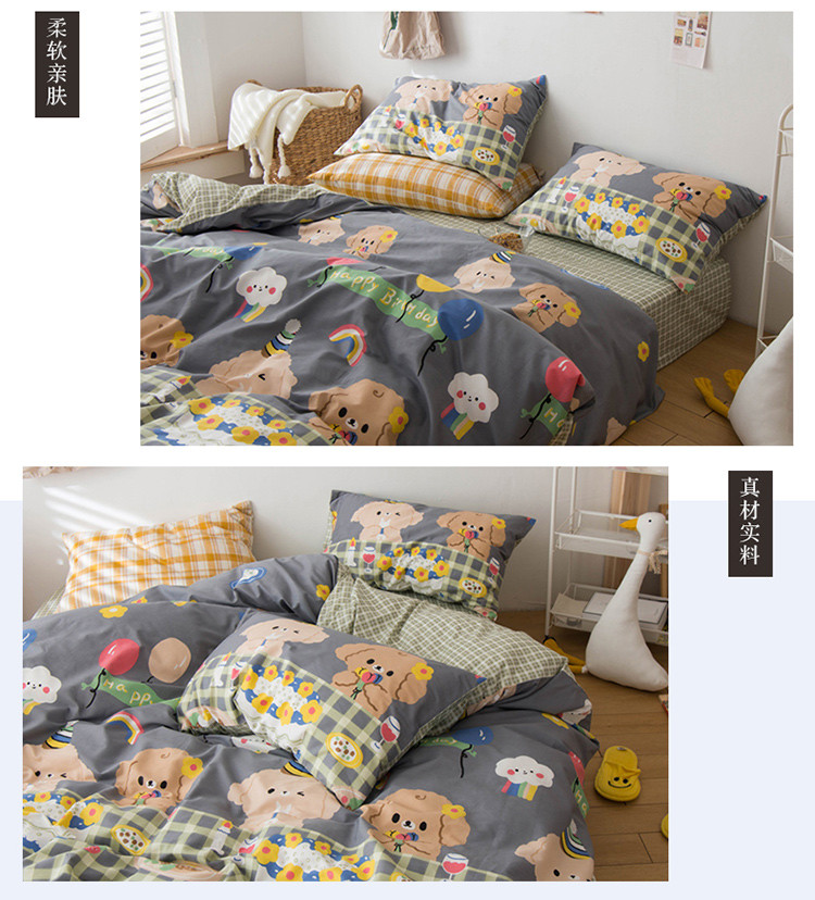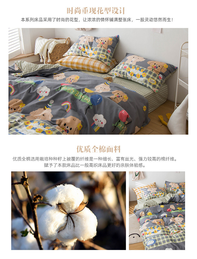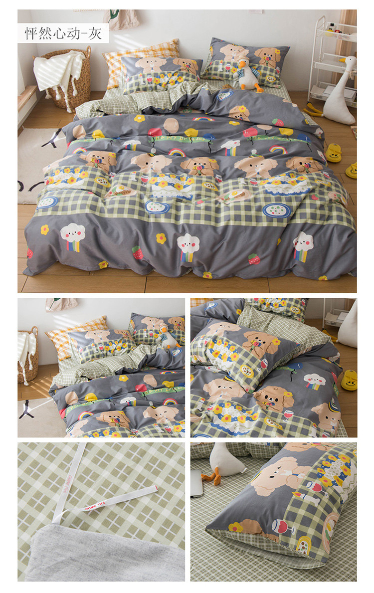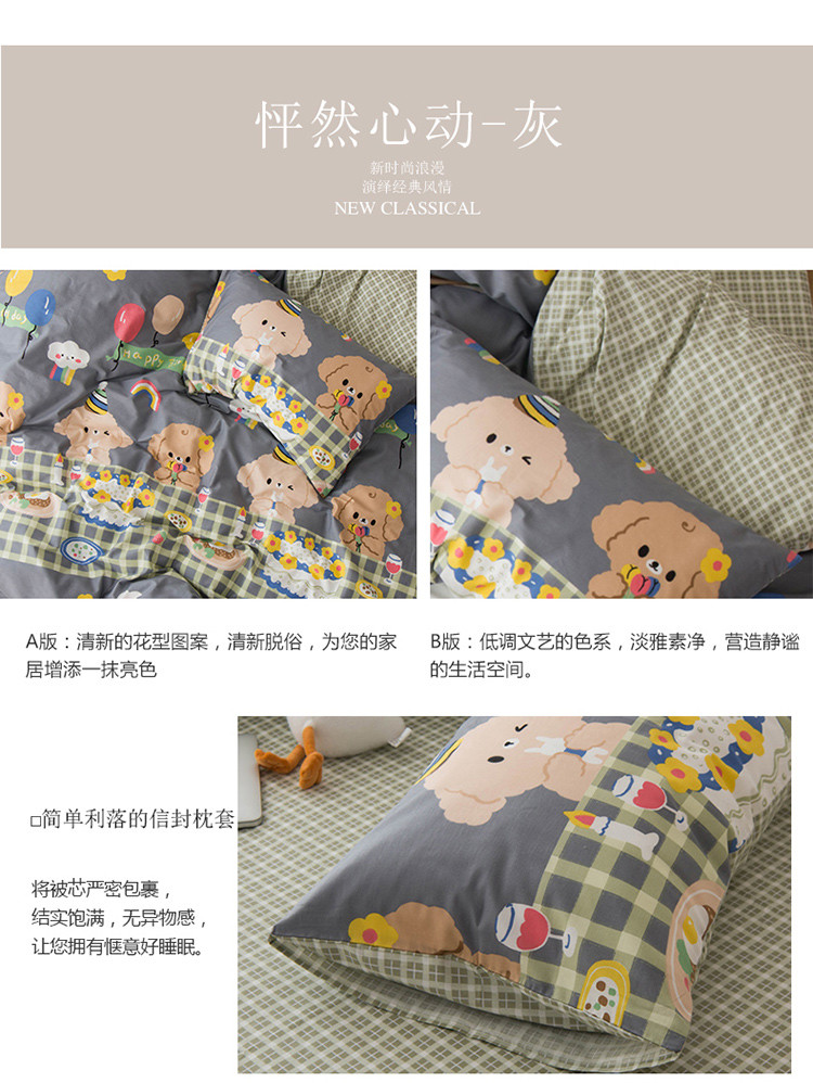 商品名称:窝米 2020春夏新品13370全棉四件套萌宠风系列 怦然心动-灰