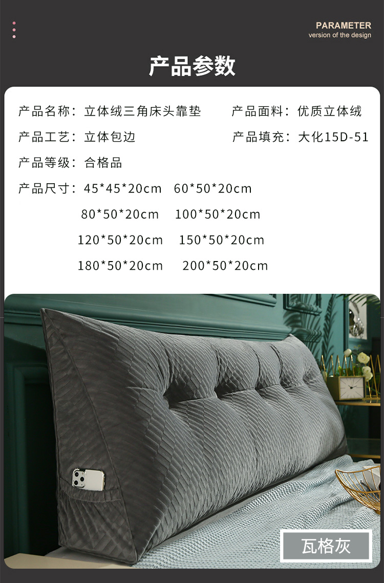 商品名称:永光家居 立体绒长三角靠垫 双人床头靠垫 榻榻米大靠枕靠背