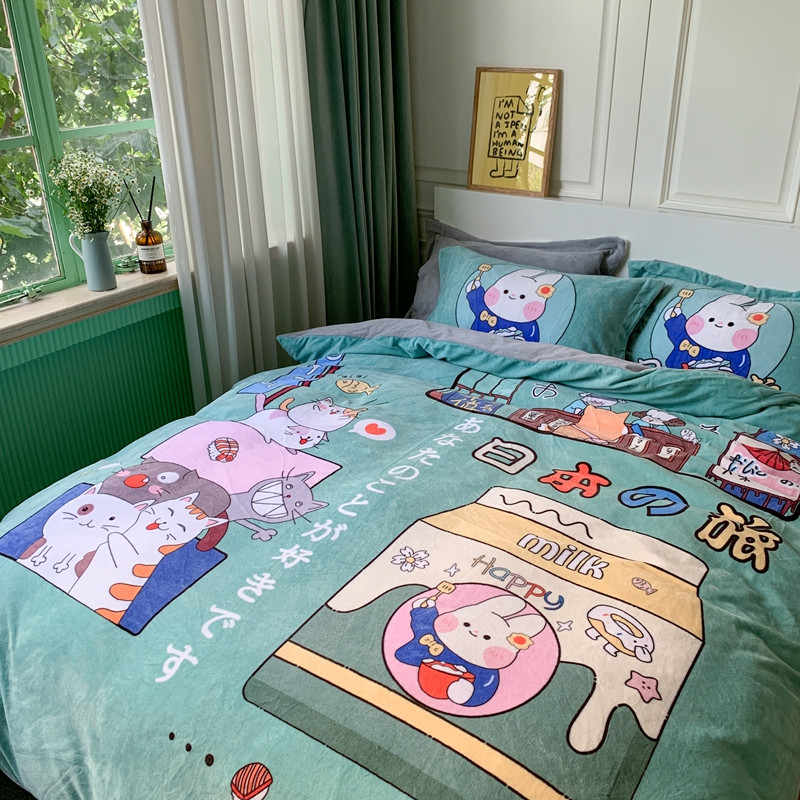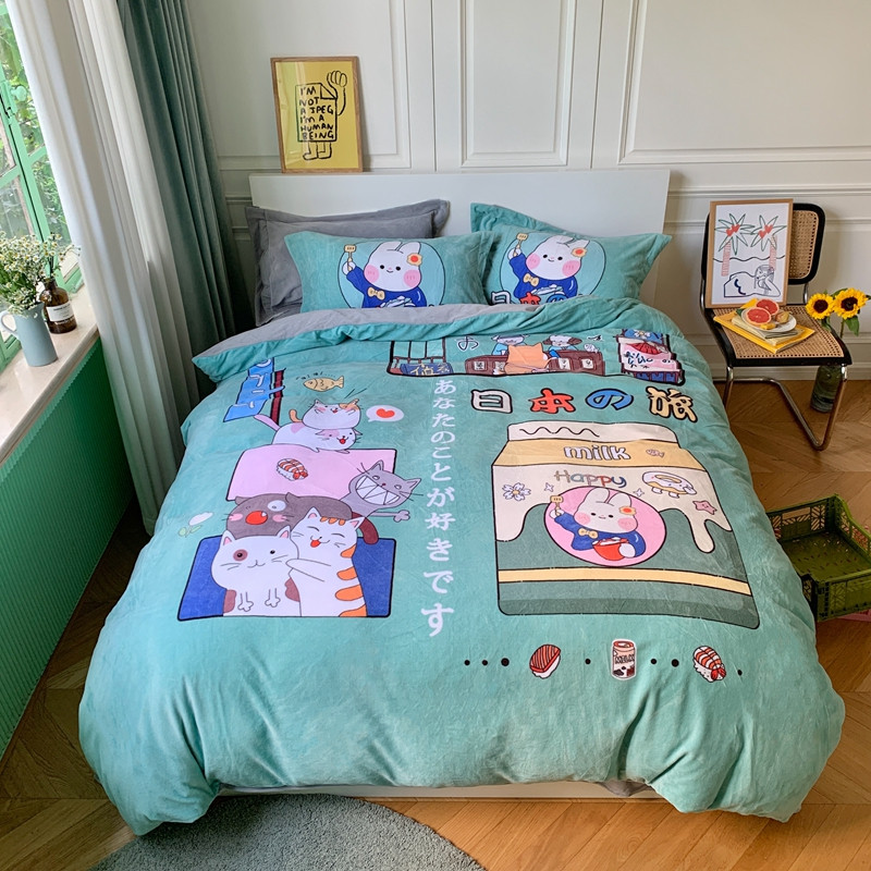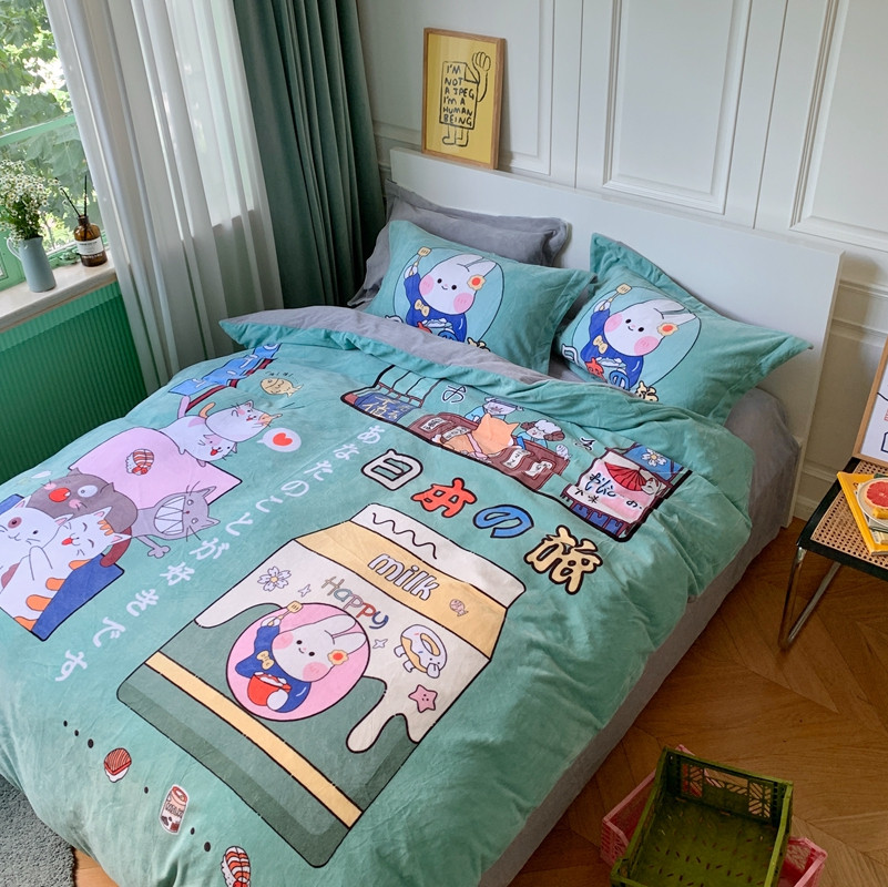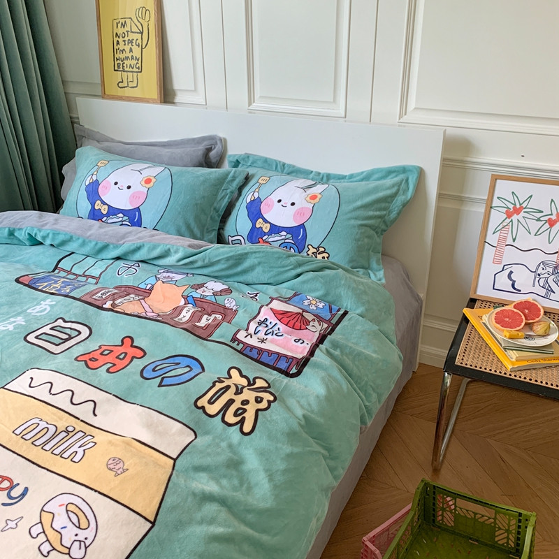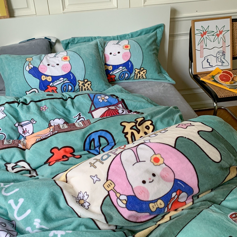 柚子 2020新款牛奶绒印花大版四件套 兔子的旅行