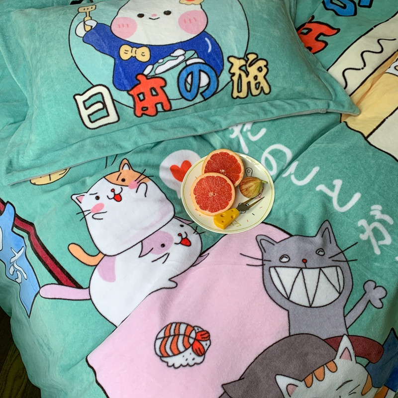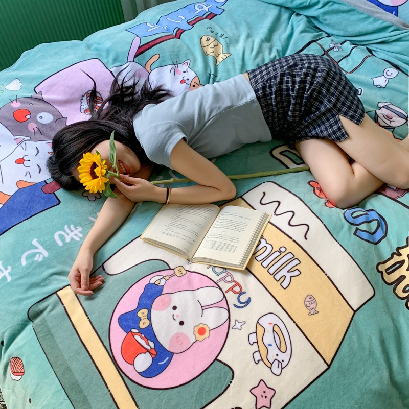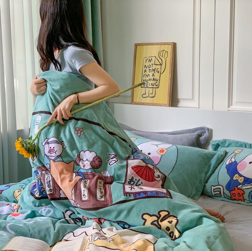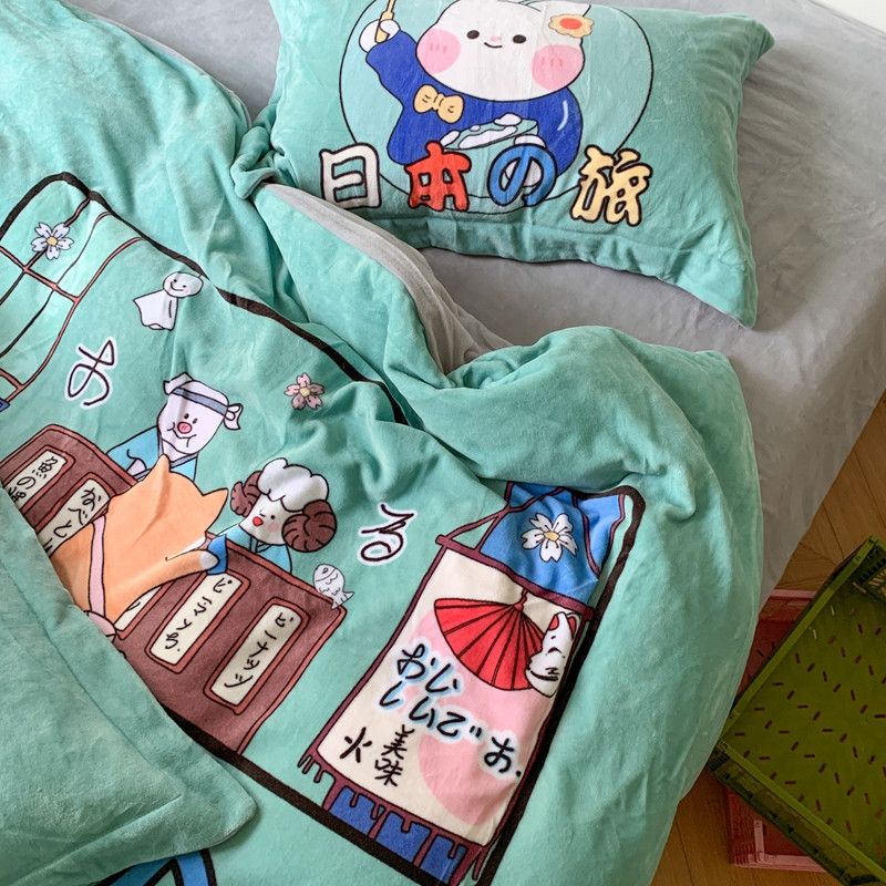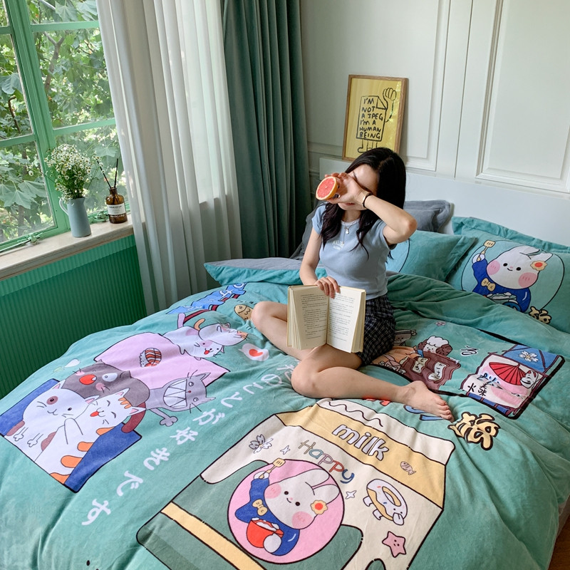 柚子 2020新款牛奶绒印花大版四件套 兔子的旅行