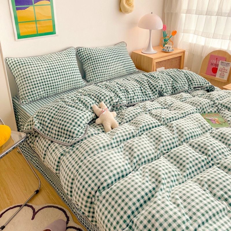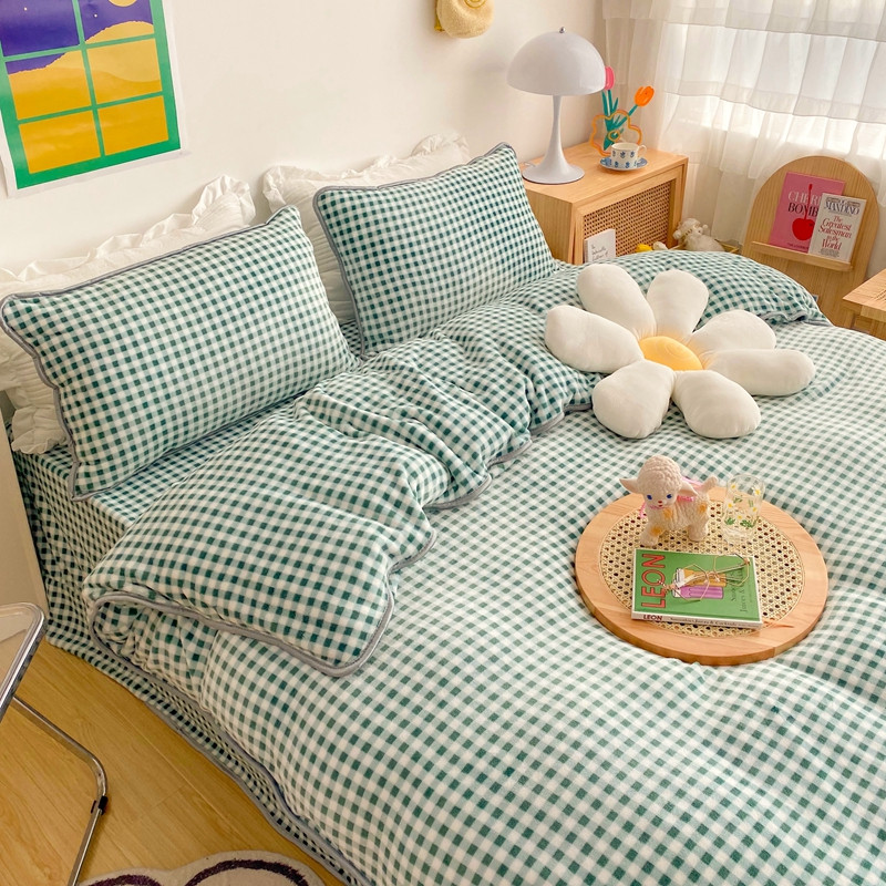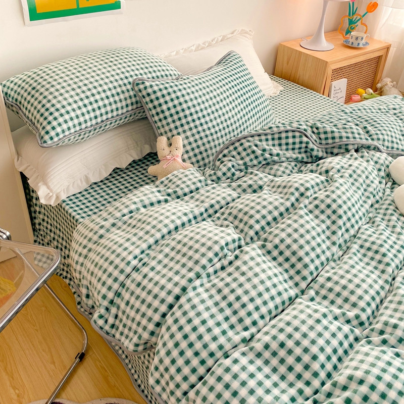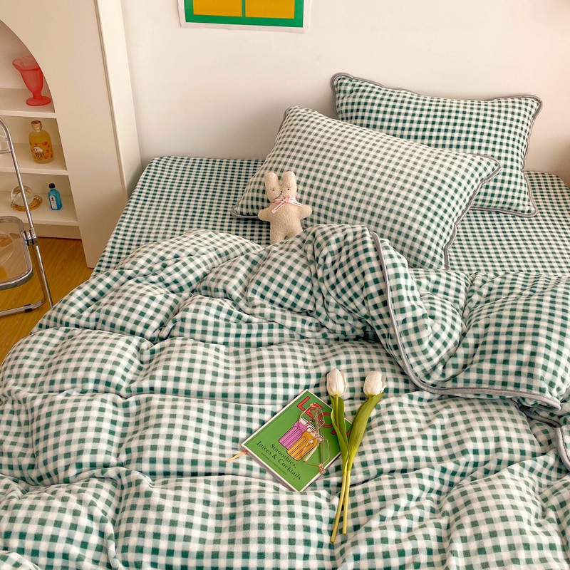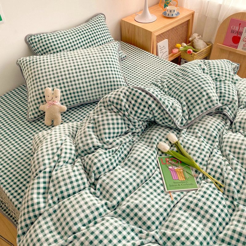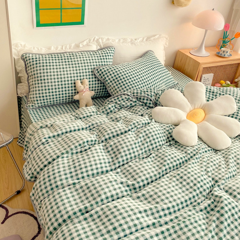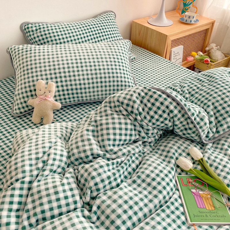 顾里 2020新款韩国ins高端保暖牛奶绒套件 绿格
