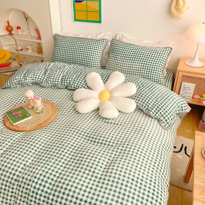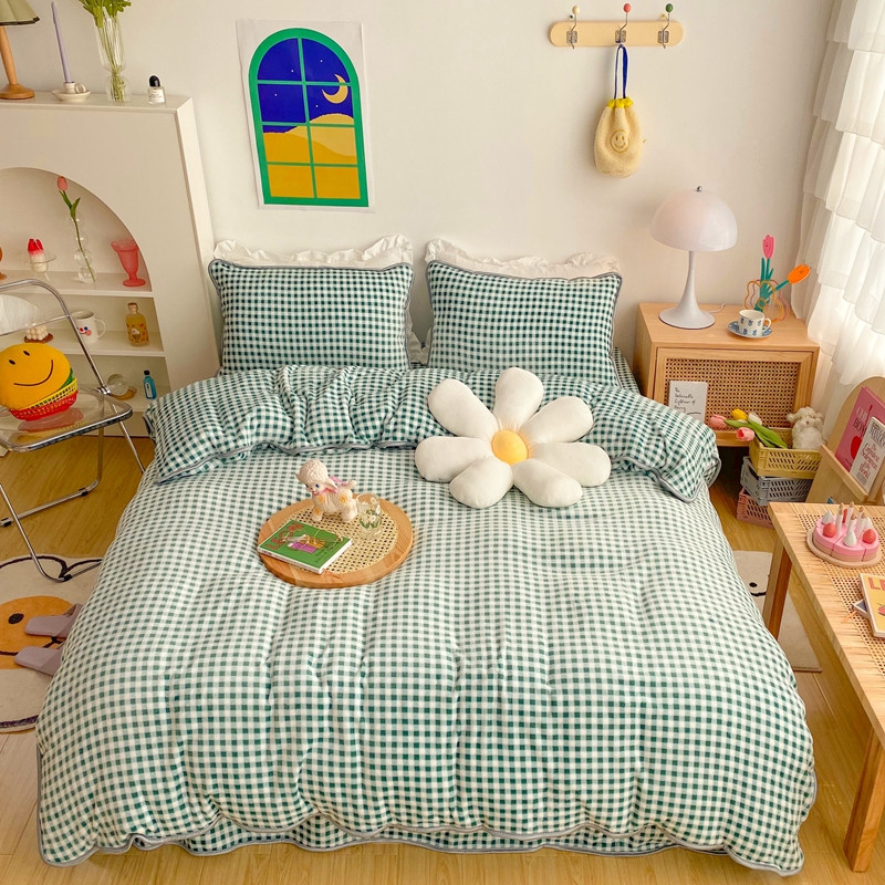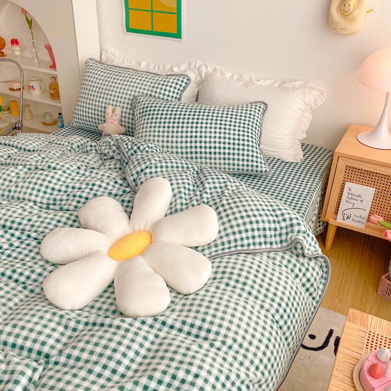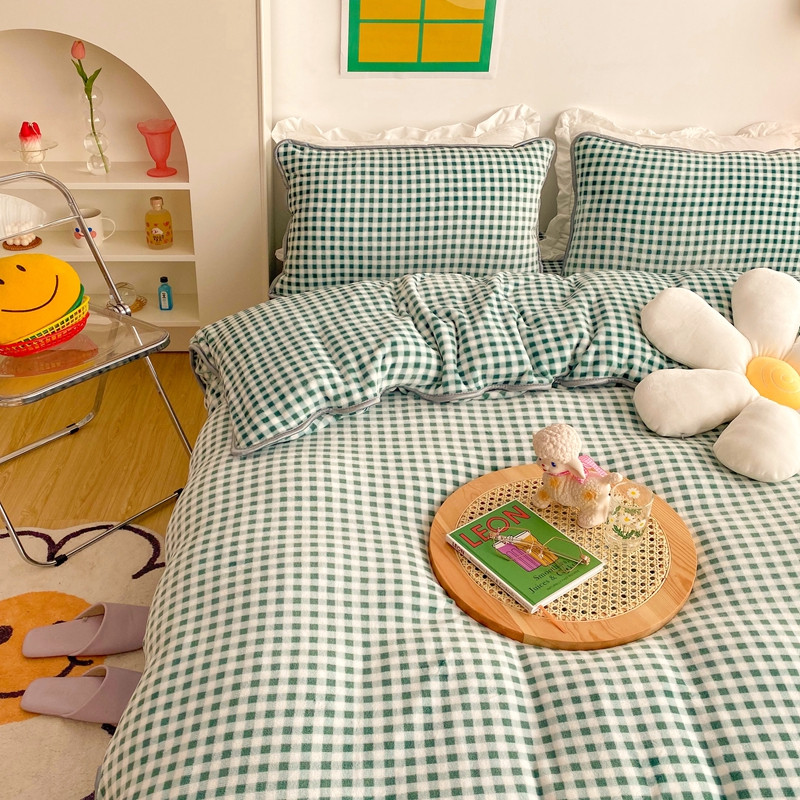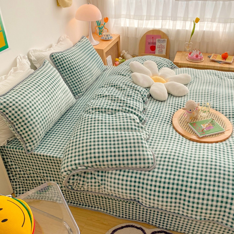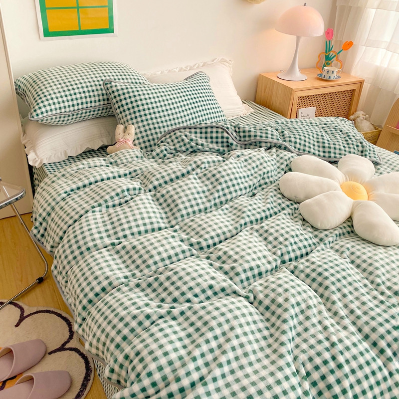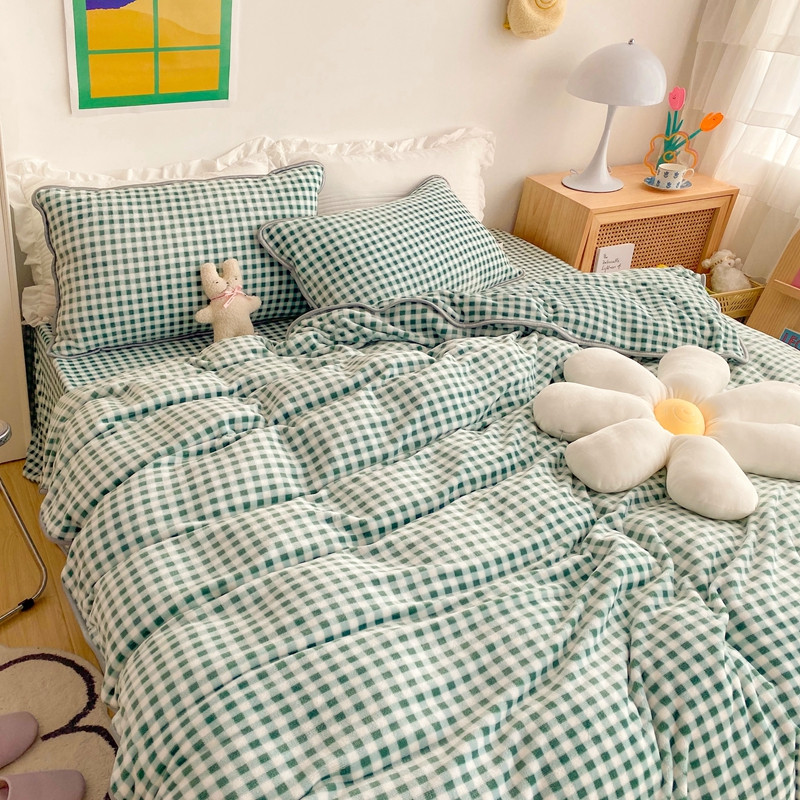 顾里 2020新款韩国ins高端保暖牛奶绒套件 绿格