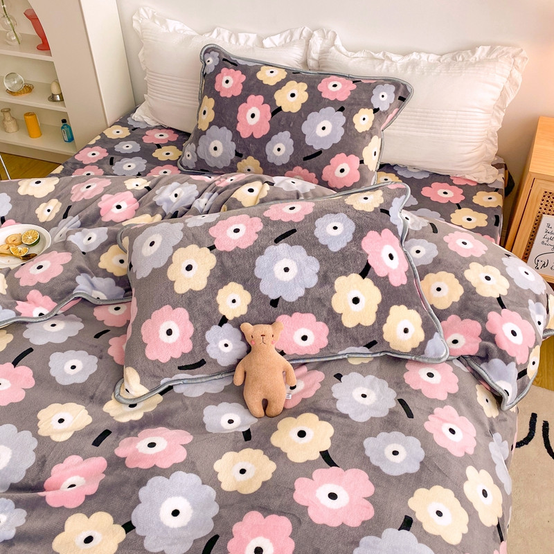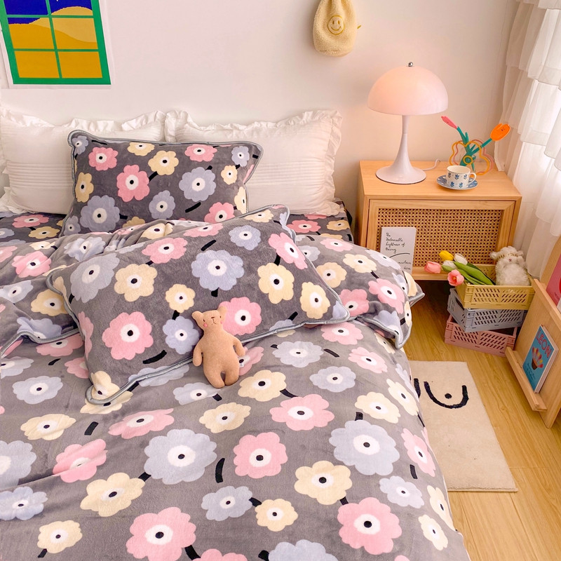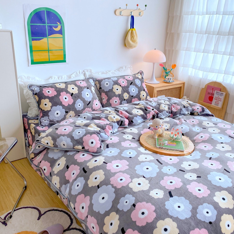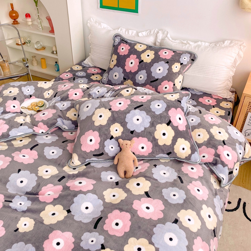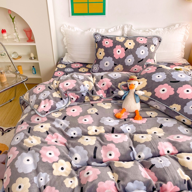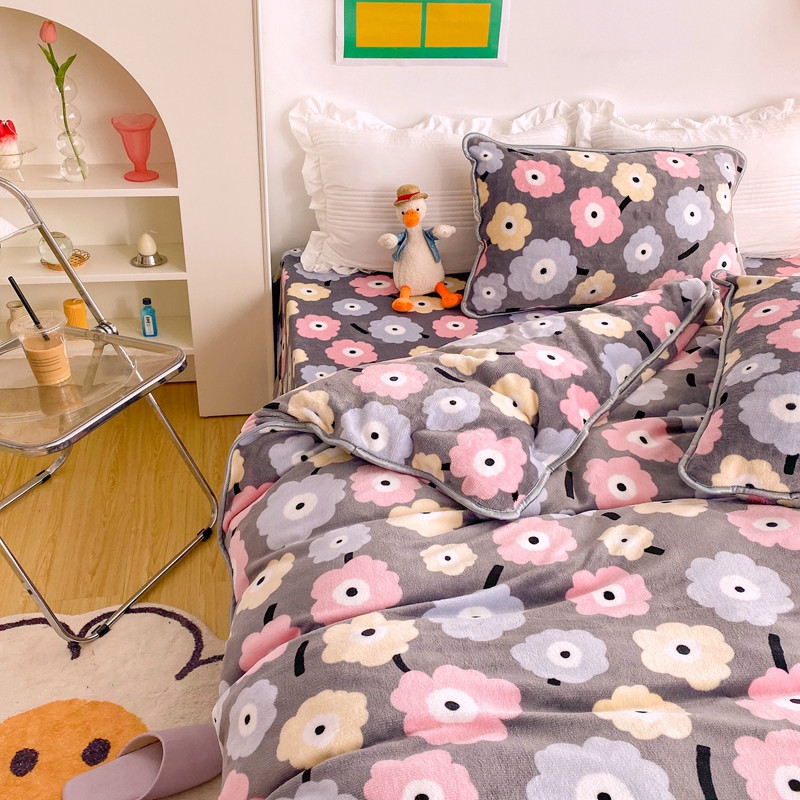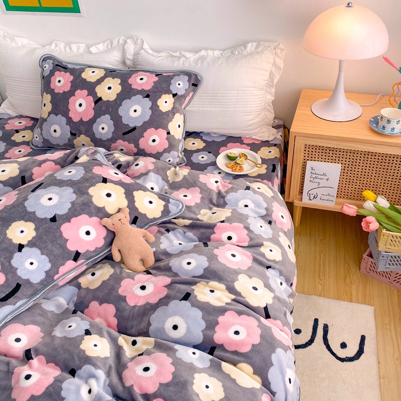 顾里 2020新款韩国ins高端保暖牛奶绒套件 彩色小花