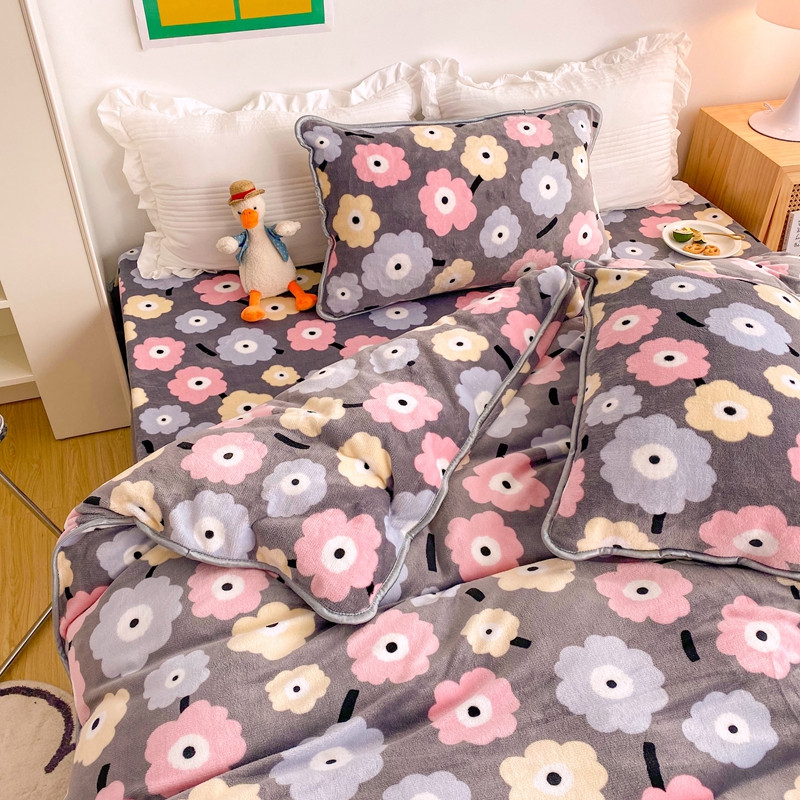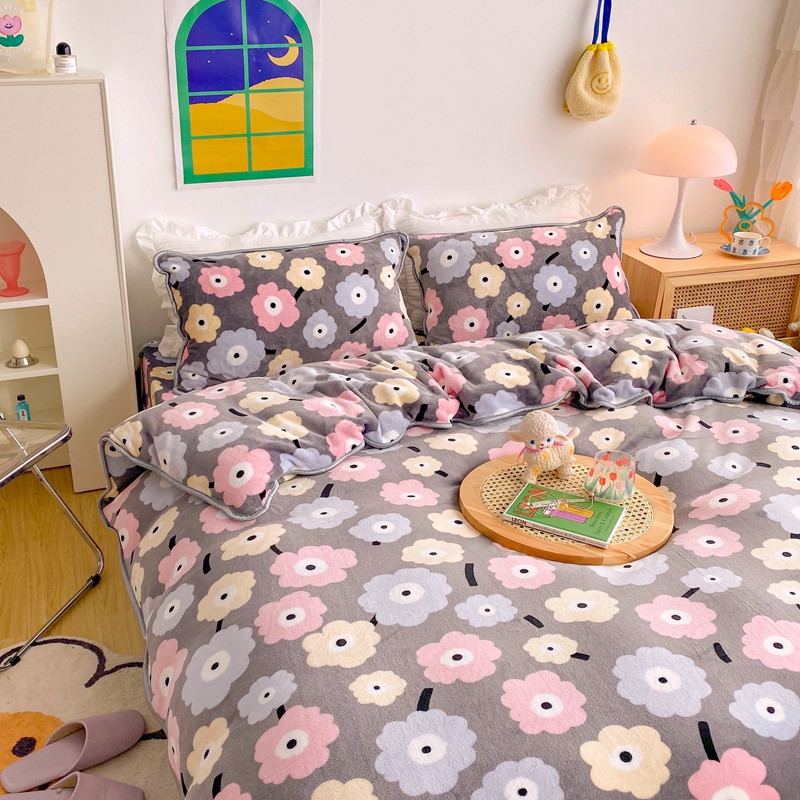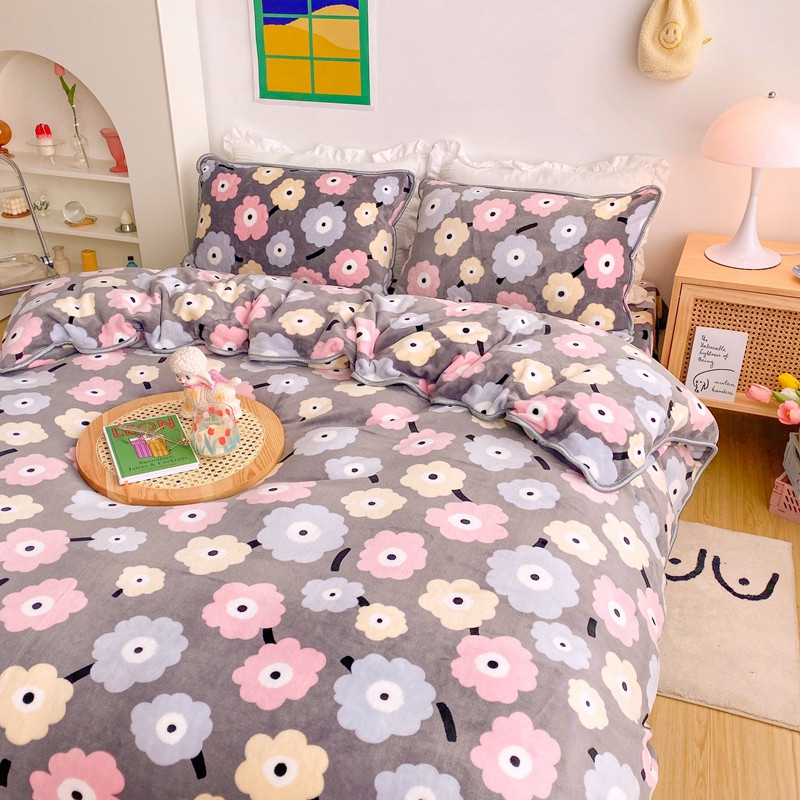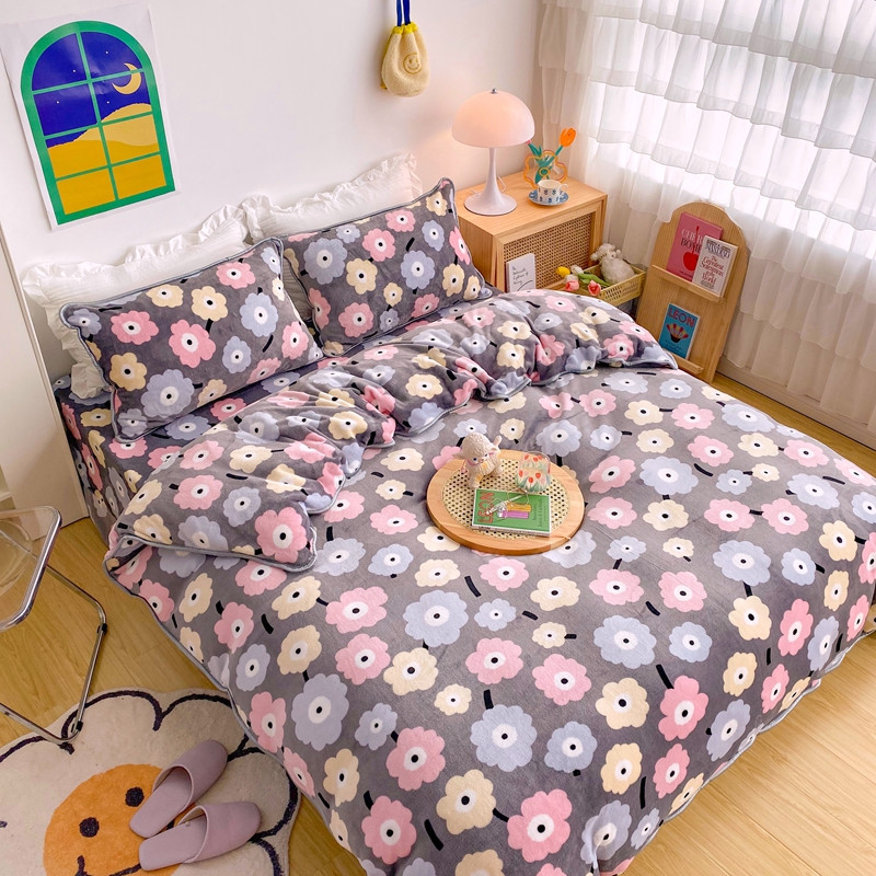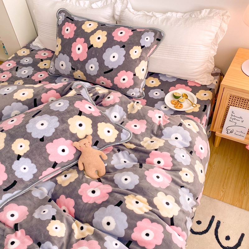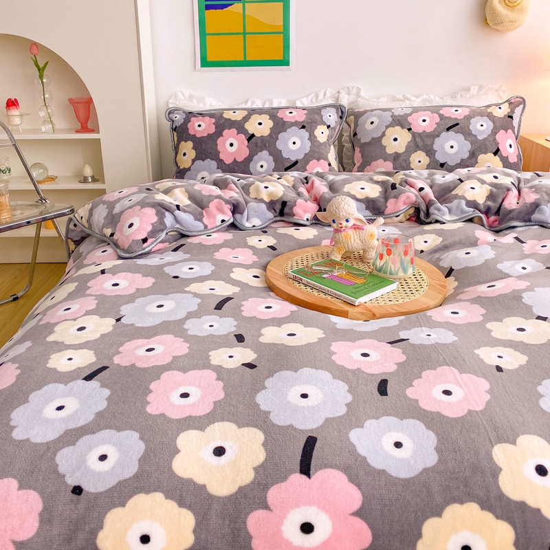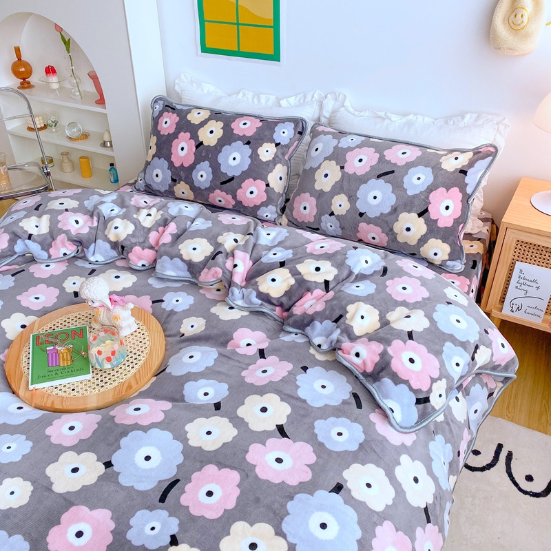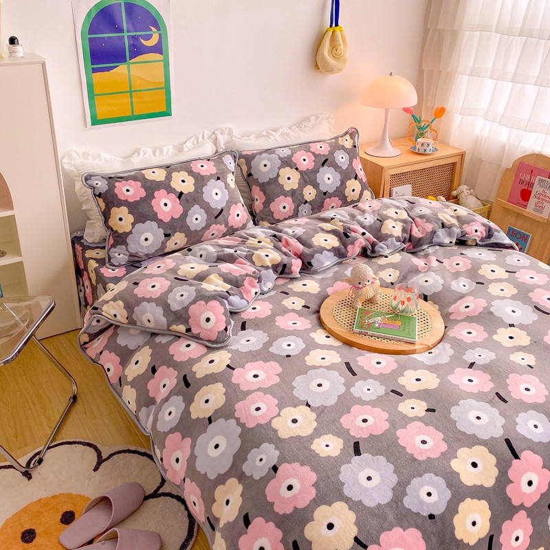 顾里 2020新款韩国ins高端保暖牛奶绒套件 彩色小花