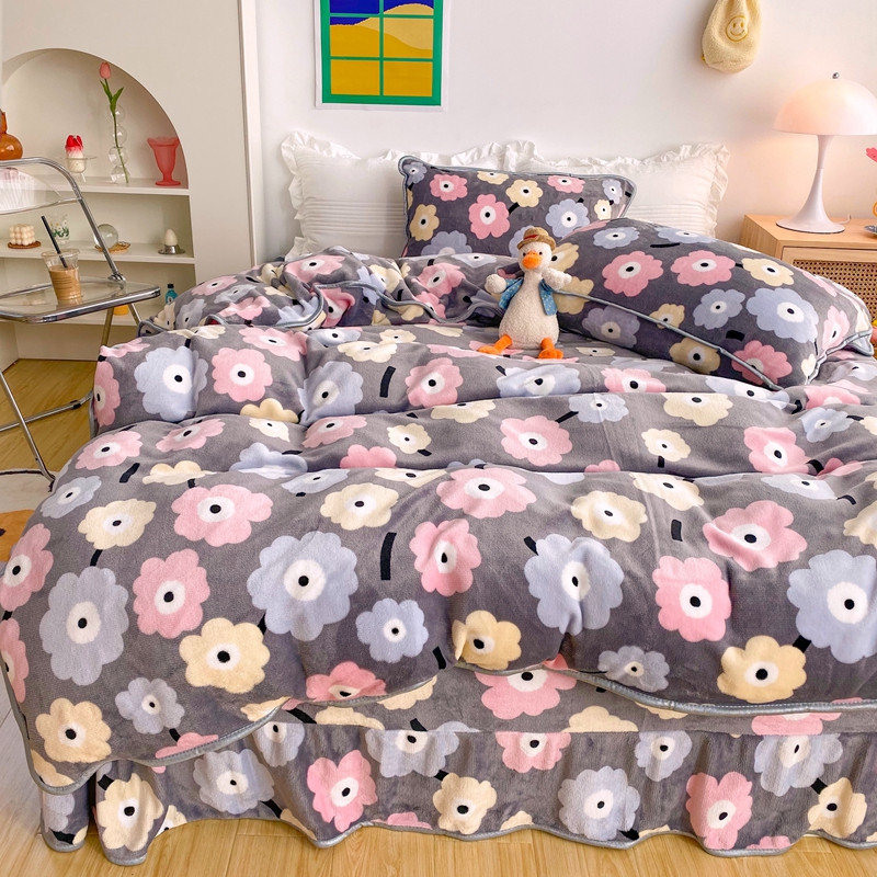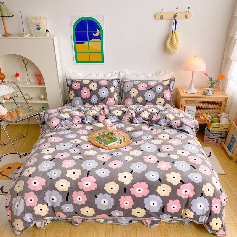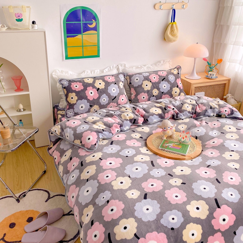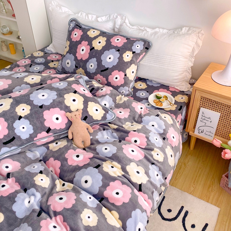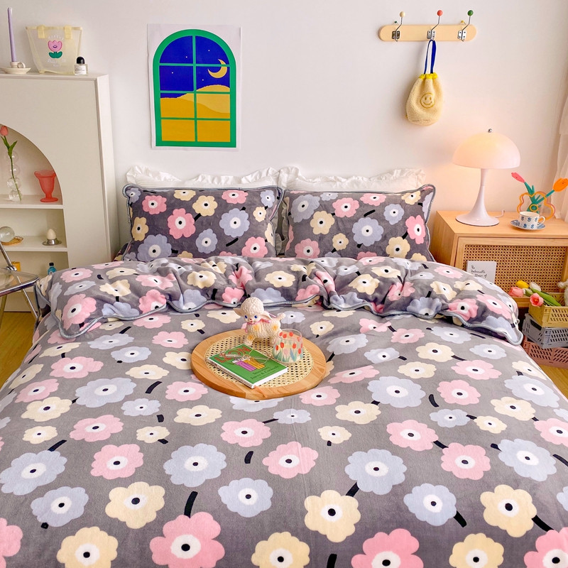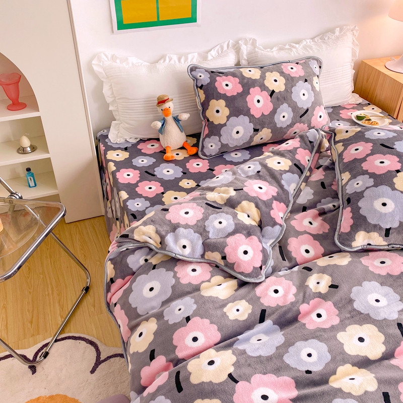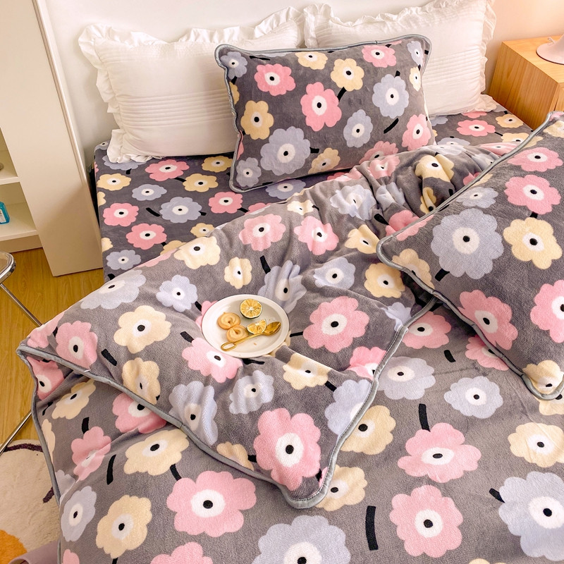 顾里 2020新款韩国ins高端保暖牛奶绒套件 彩色小花