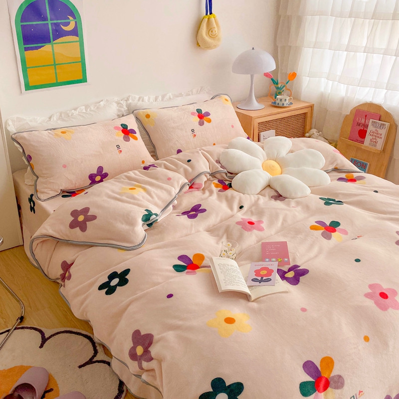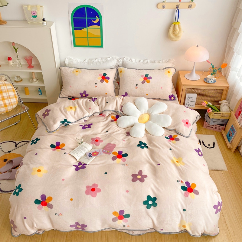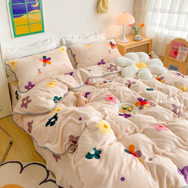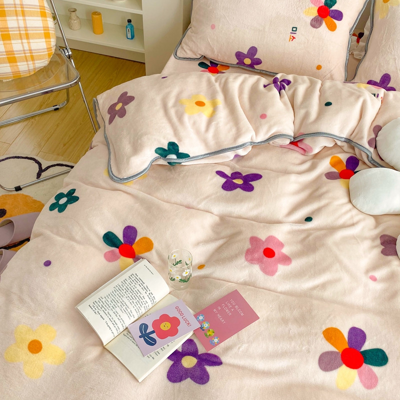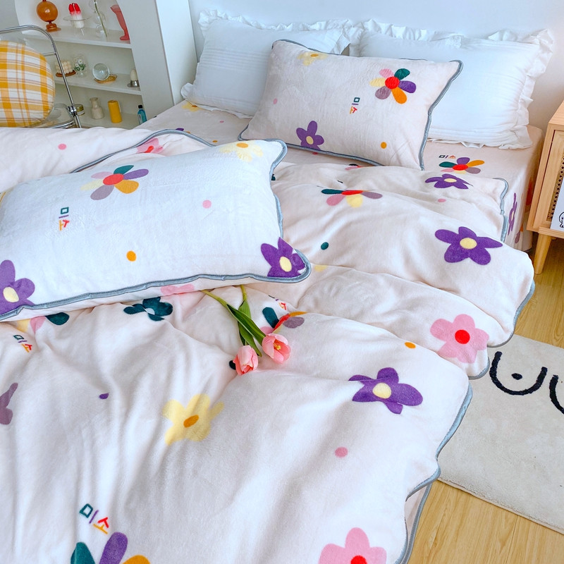 顾里 2020新款韩国ins高端保暖牛奶绒套件 泫雅花
