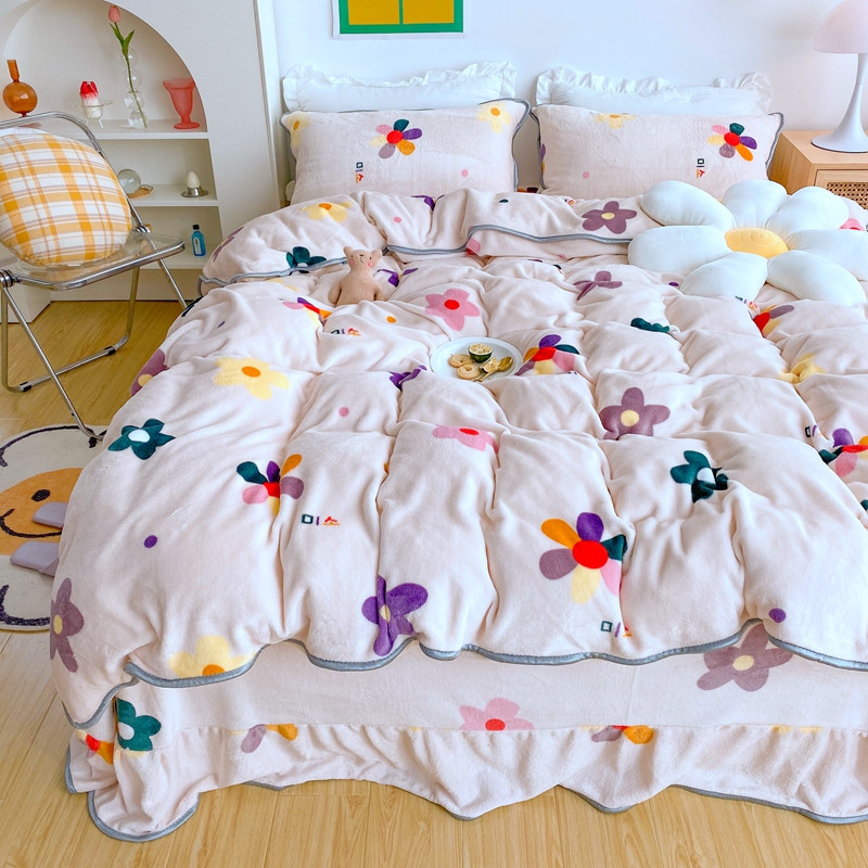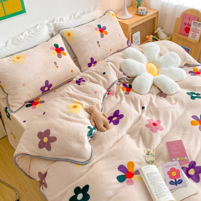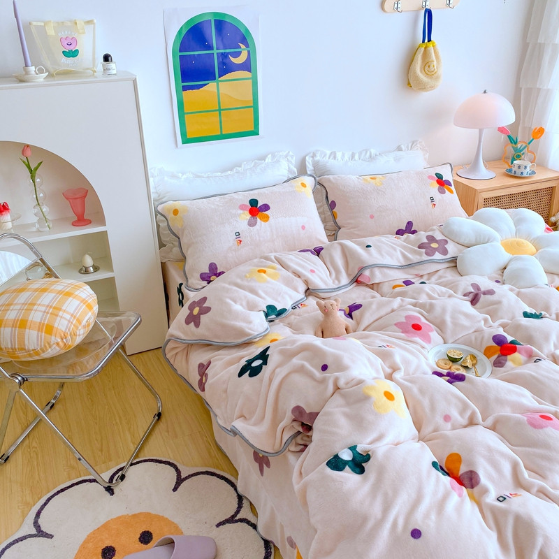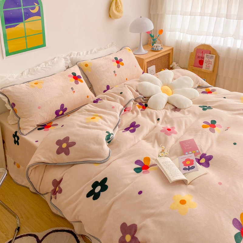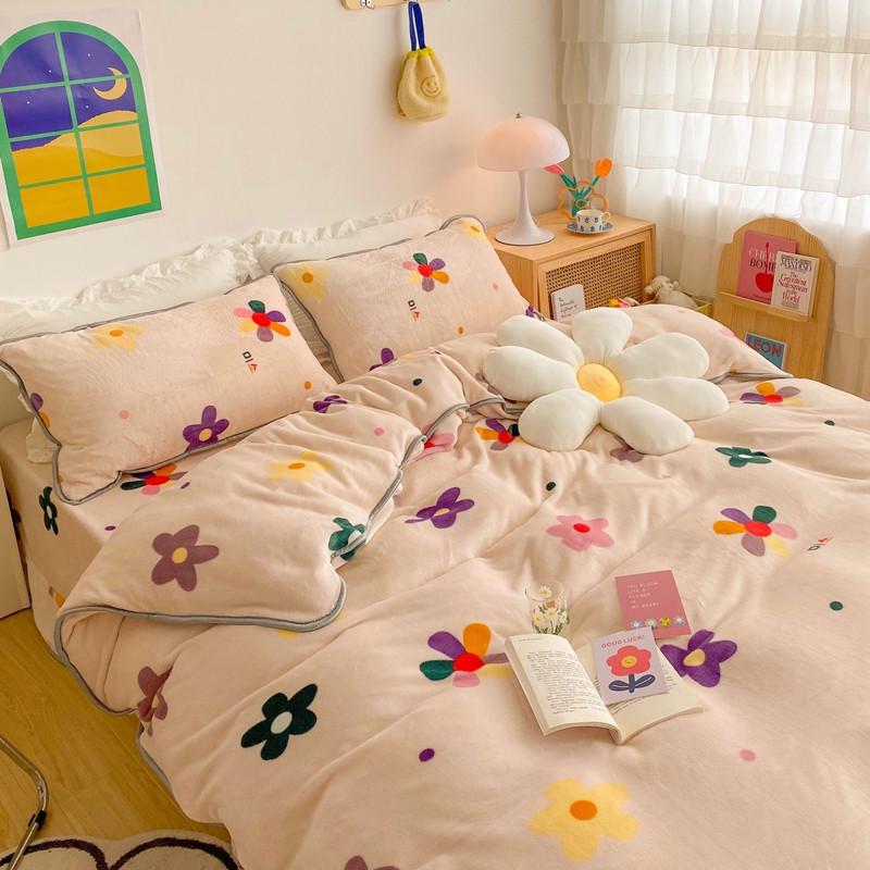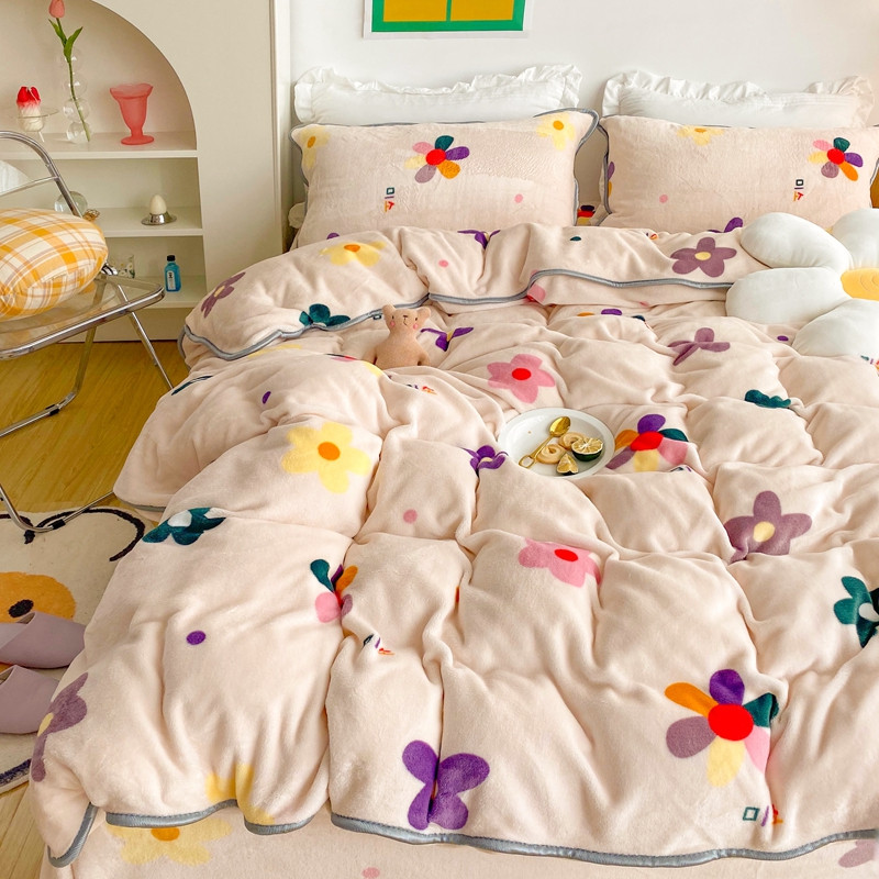 顾里 2020新款韩国ins高端保暖牛奶绒套件 泫雅花