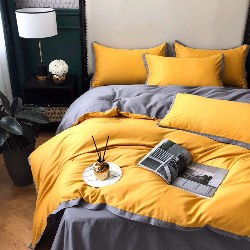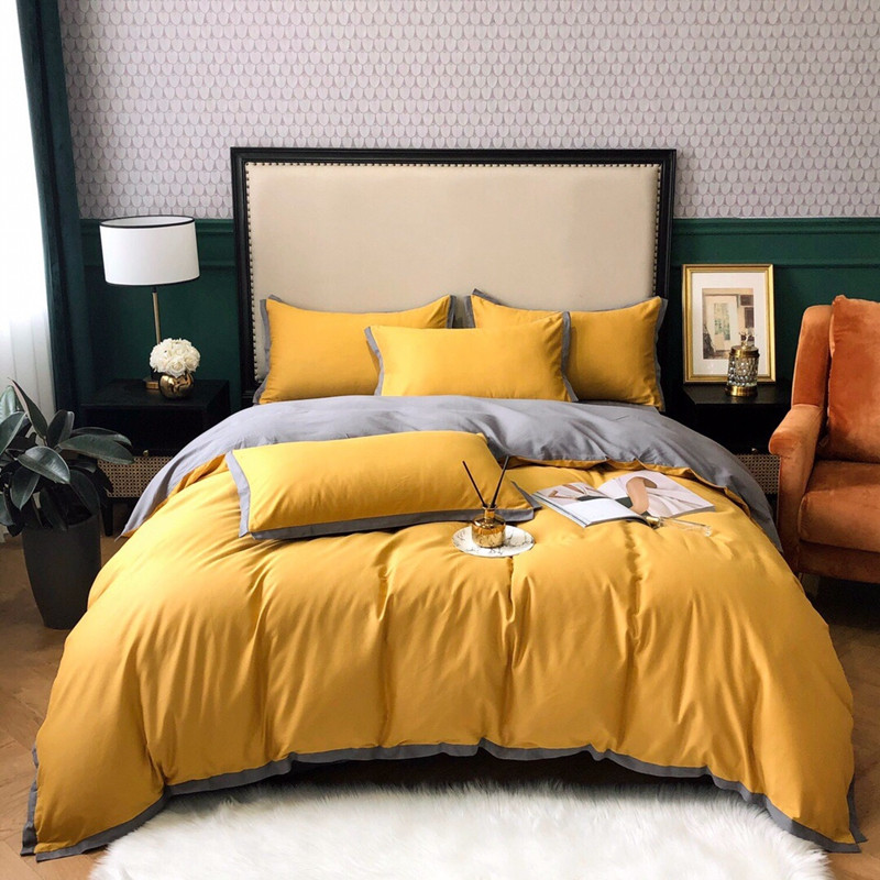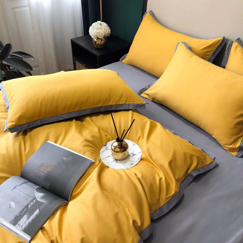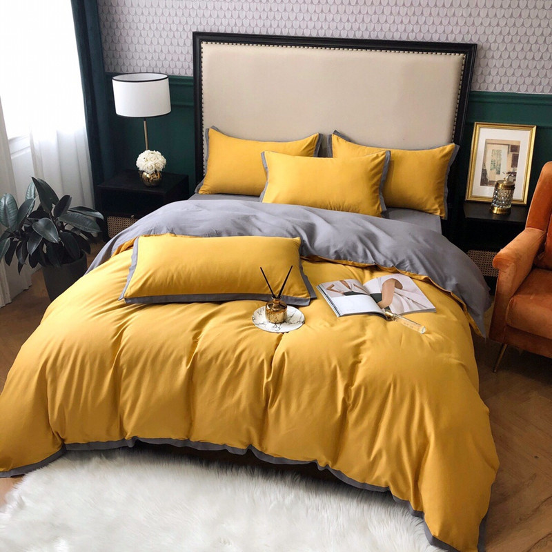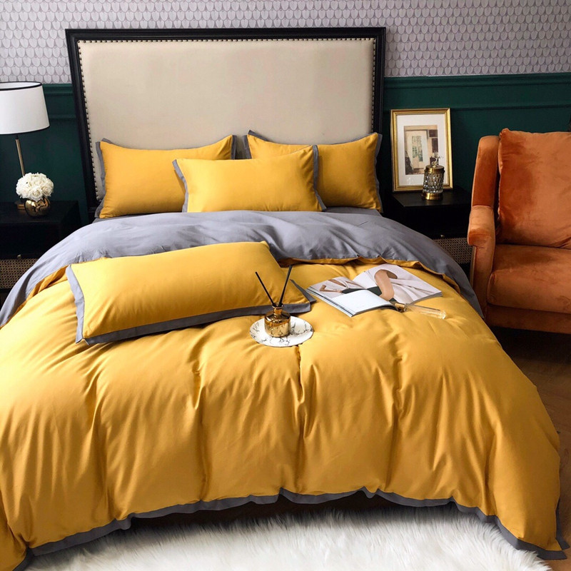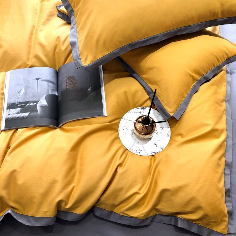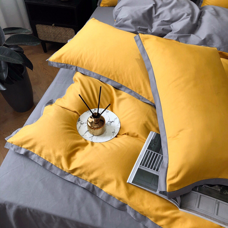 玖玖爱 2020新款贡缎磨毛四件套 黄灰