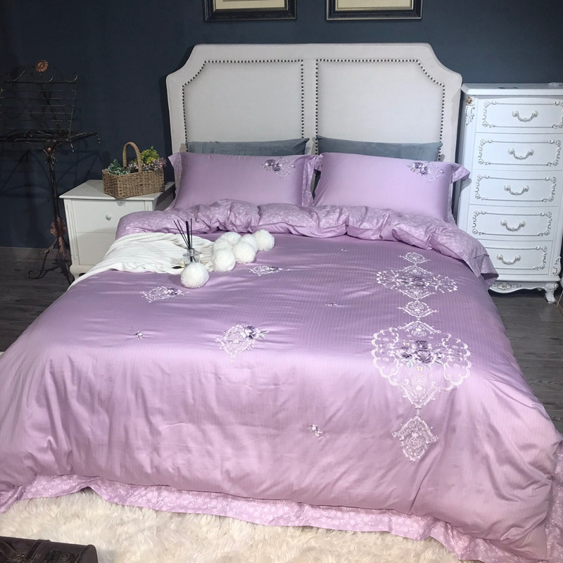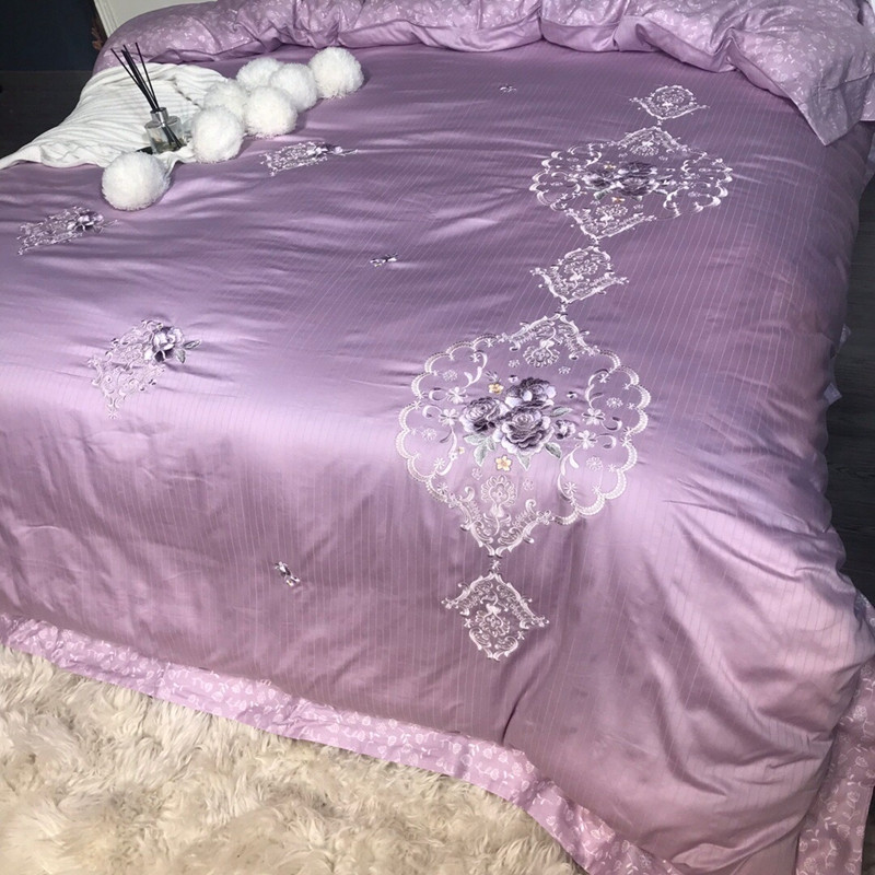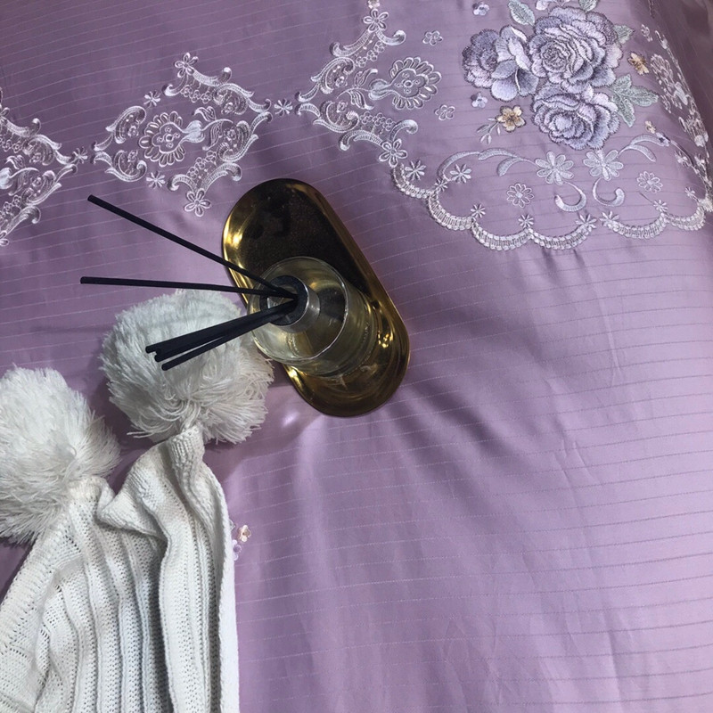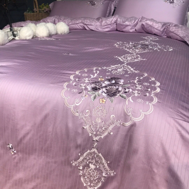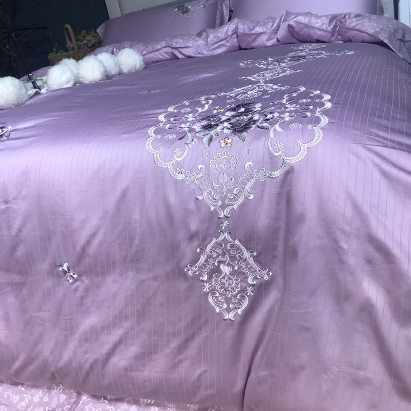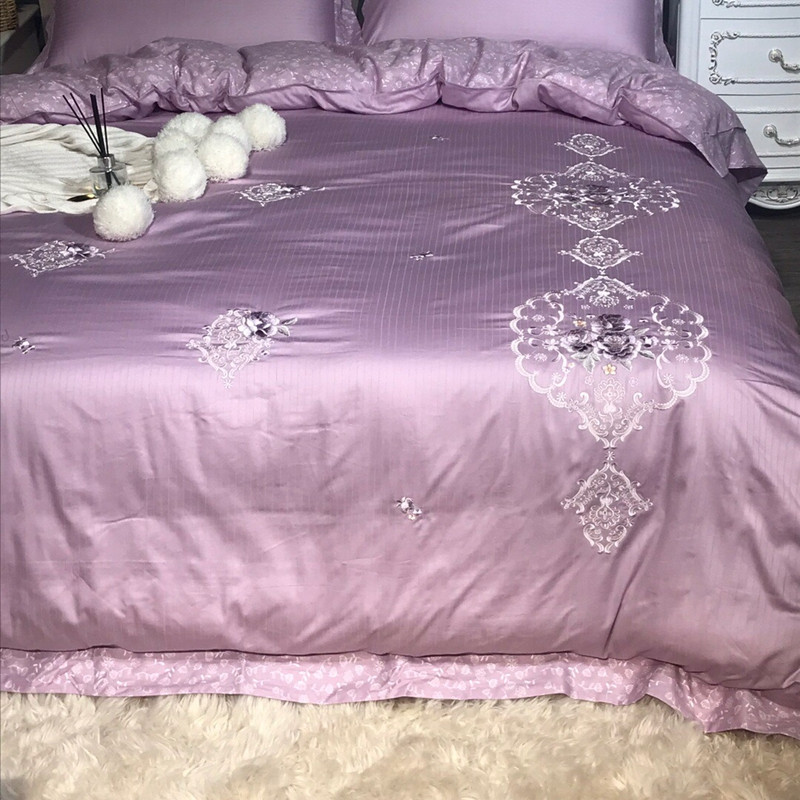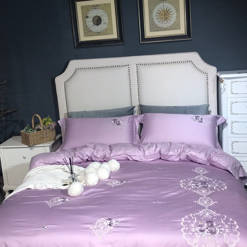 玖玖爱 2020新款100支提加印绣花系四件套 密西西里深紫