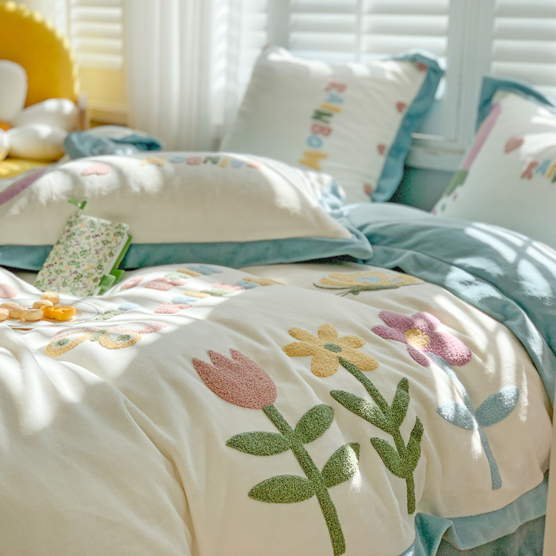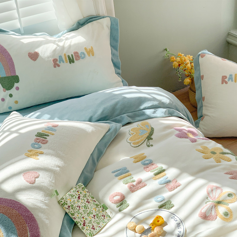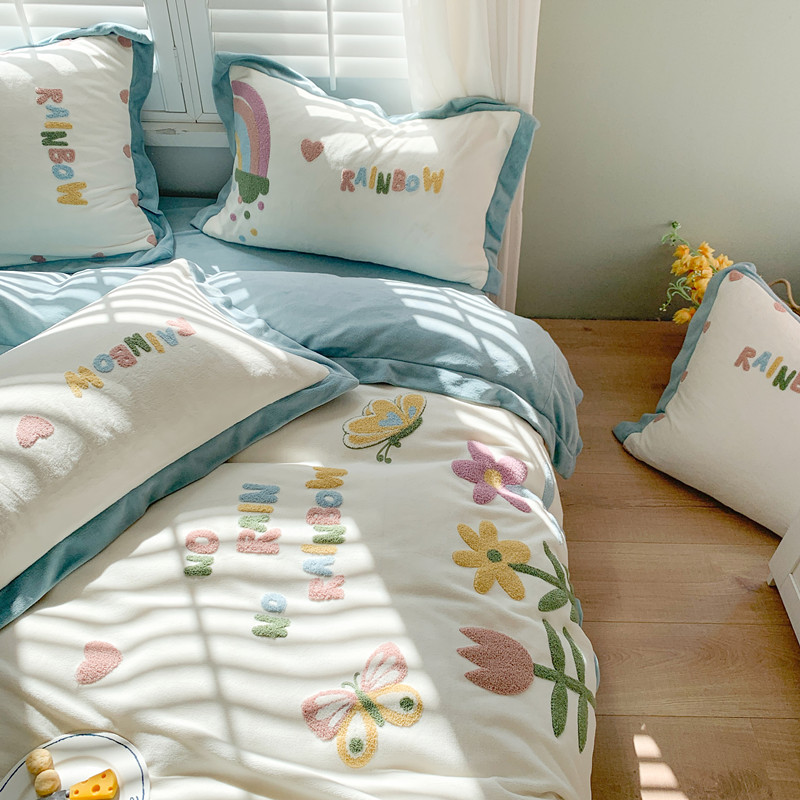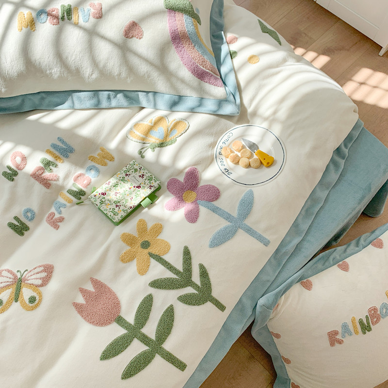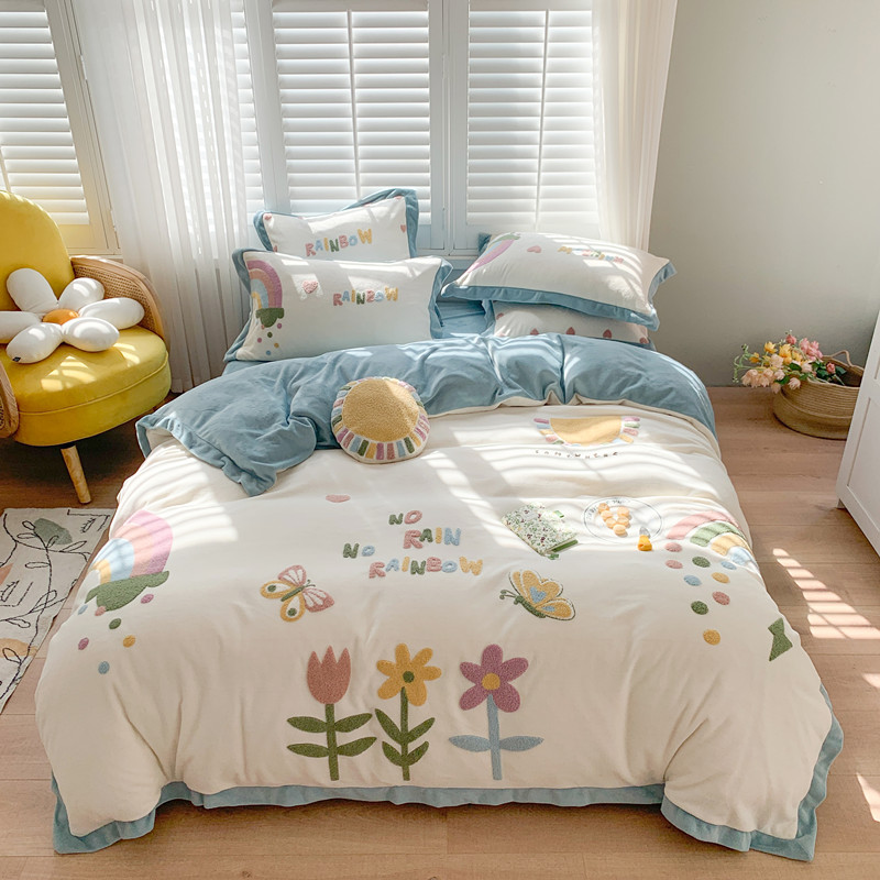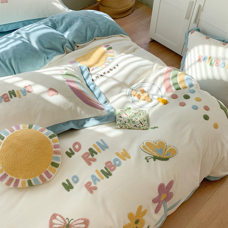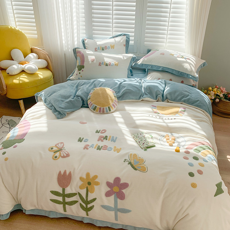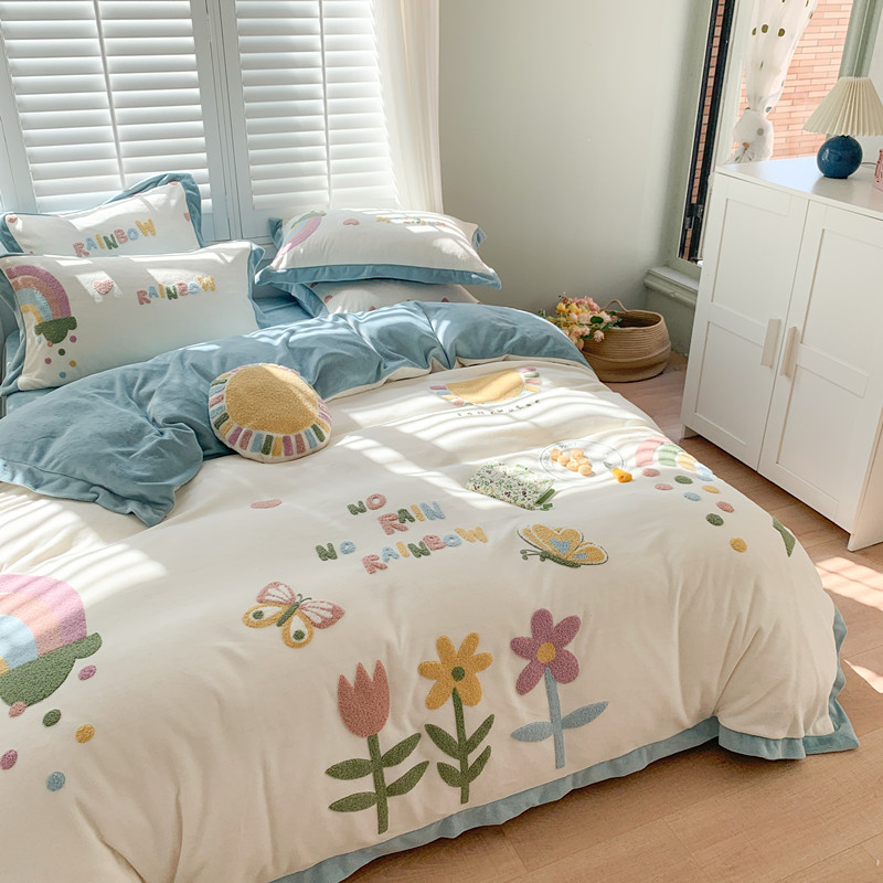 (总)星野 2025新款高克重牛奶绒贴布绣四件套-摇摇乐,摇摇乐