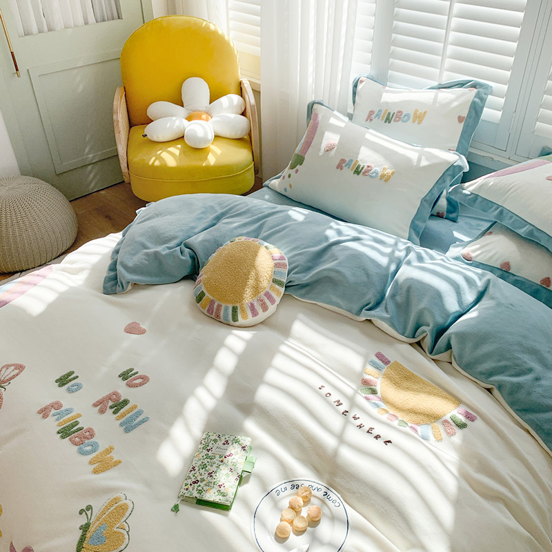 商品名称:星野 2020新款牛奶绒太阳雨系列四件套 蔚蓝