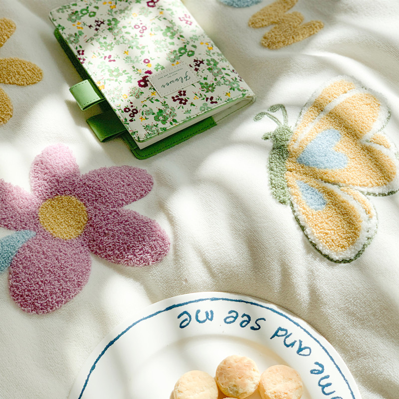(总)星野 2025新款高克重牛奶绒毛巾绣贴布绣四件套-彼得兔,春日-彼得兔