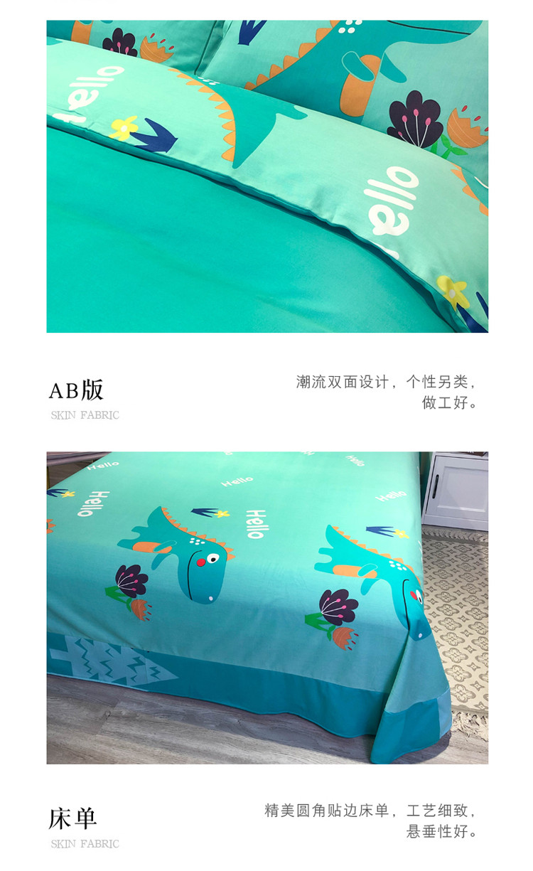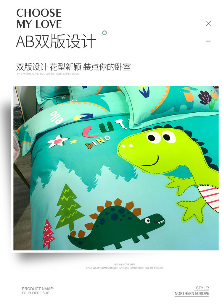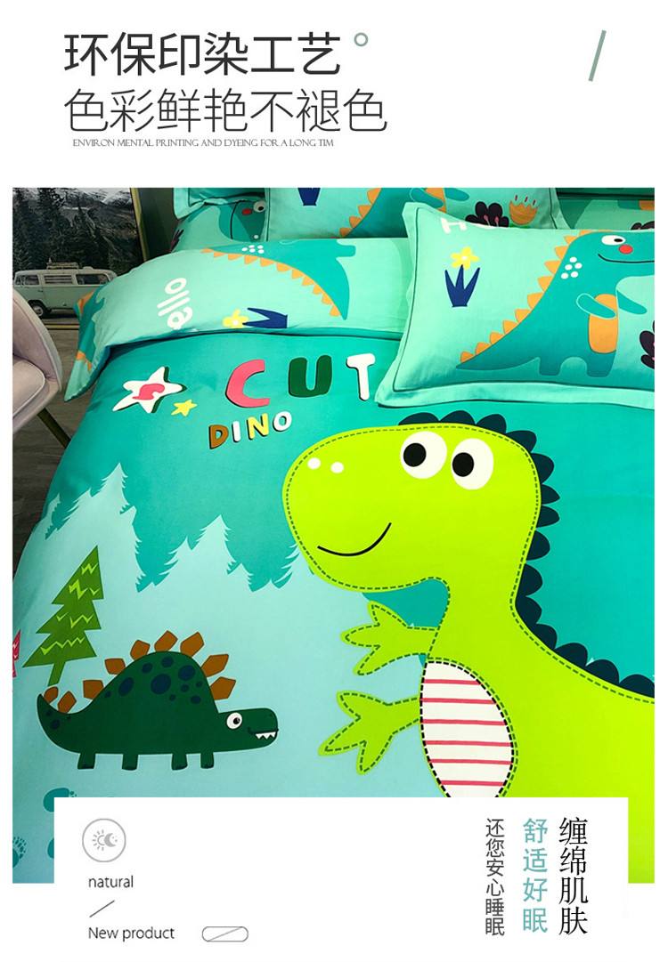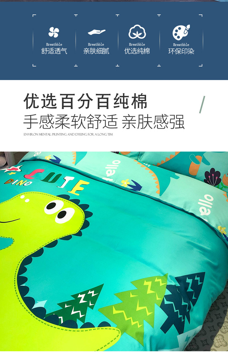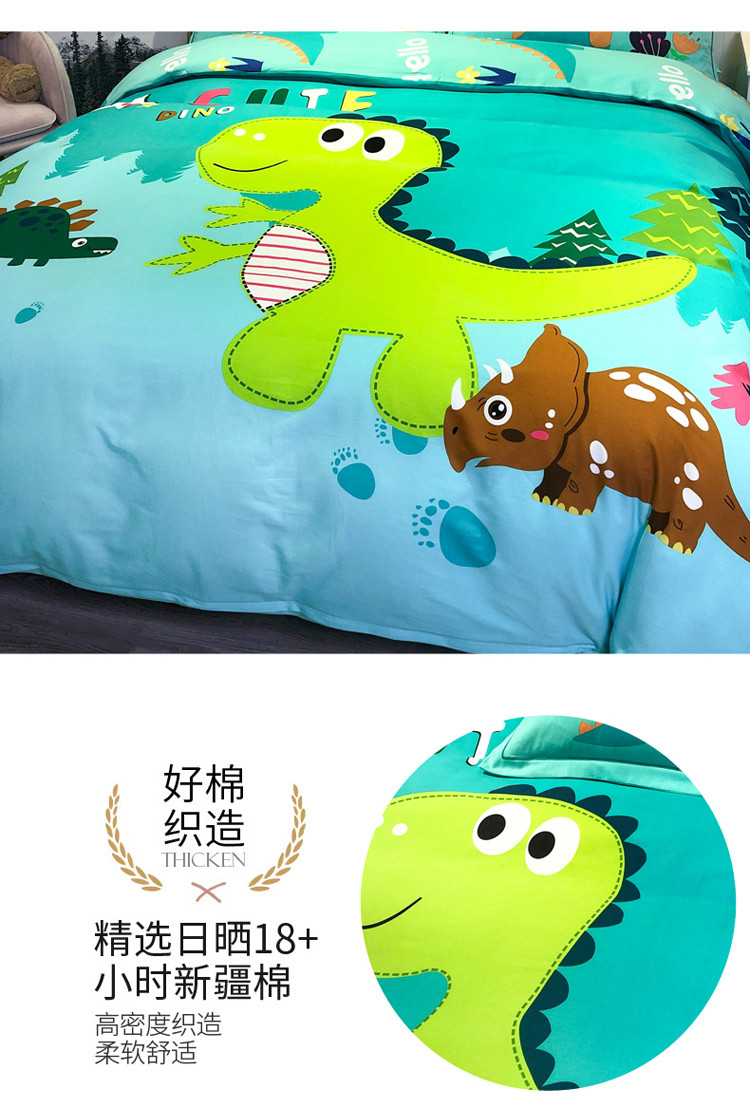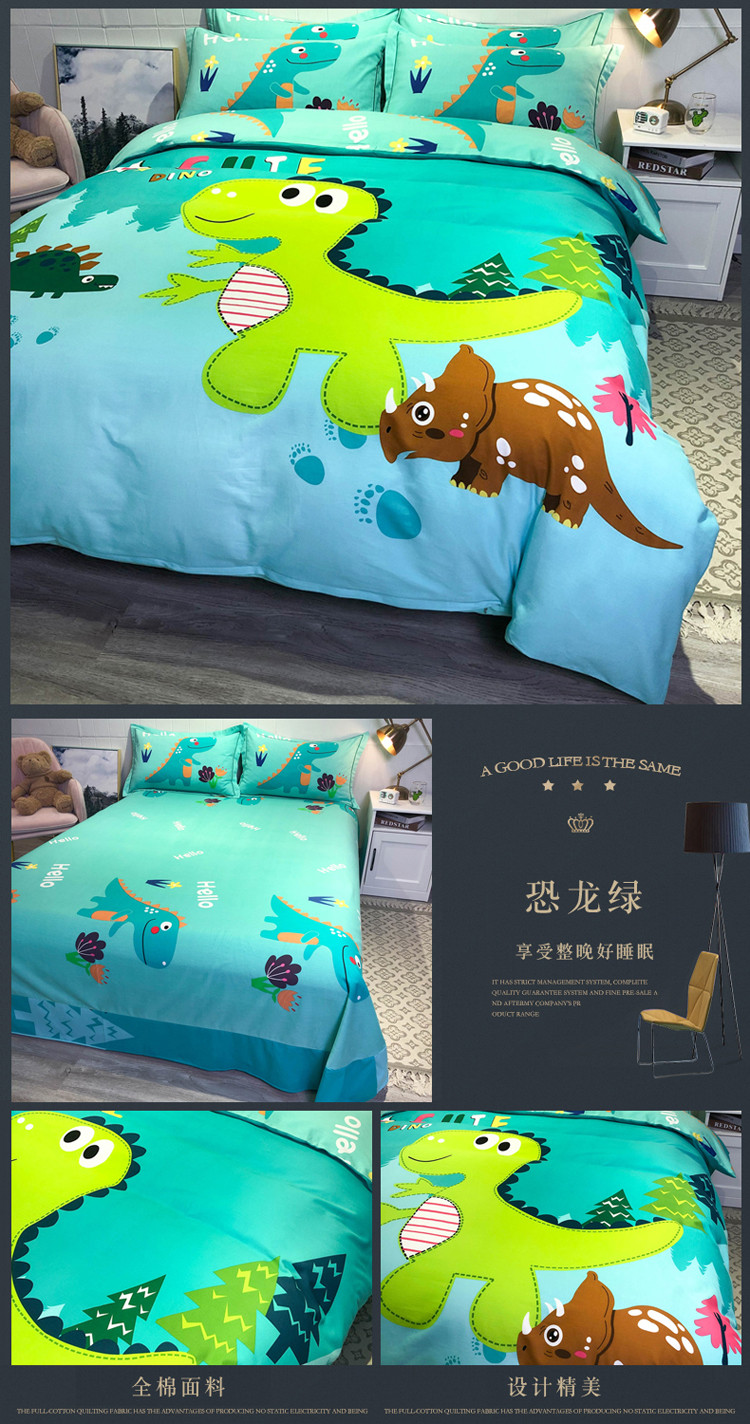 当前位置: 91家纺网 > 商品网购 > 床品套件 > 四件套 > 全棉普通四件套 > 金爱家 2021新款13372大版全棉卡通四件套恐龙绿