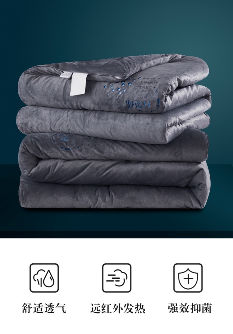 • 91家纺网 家纺一手货源 找家纺 2020新款石墨烯抗菌远红外加厚保暖臻丝绒冬被被子被芯摩登灰