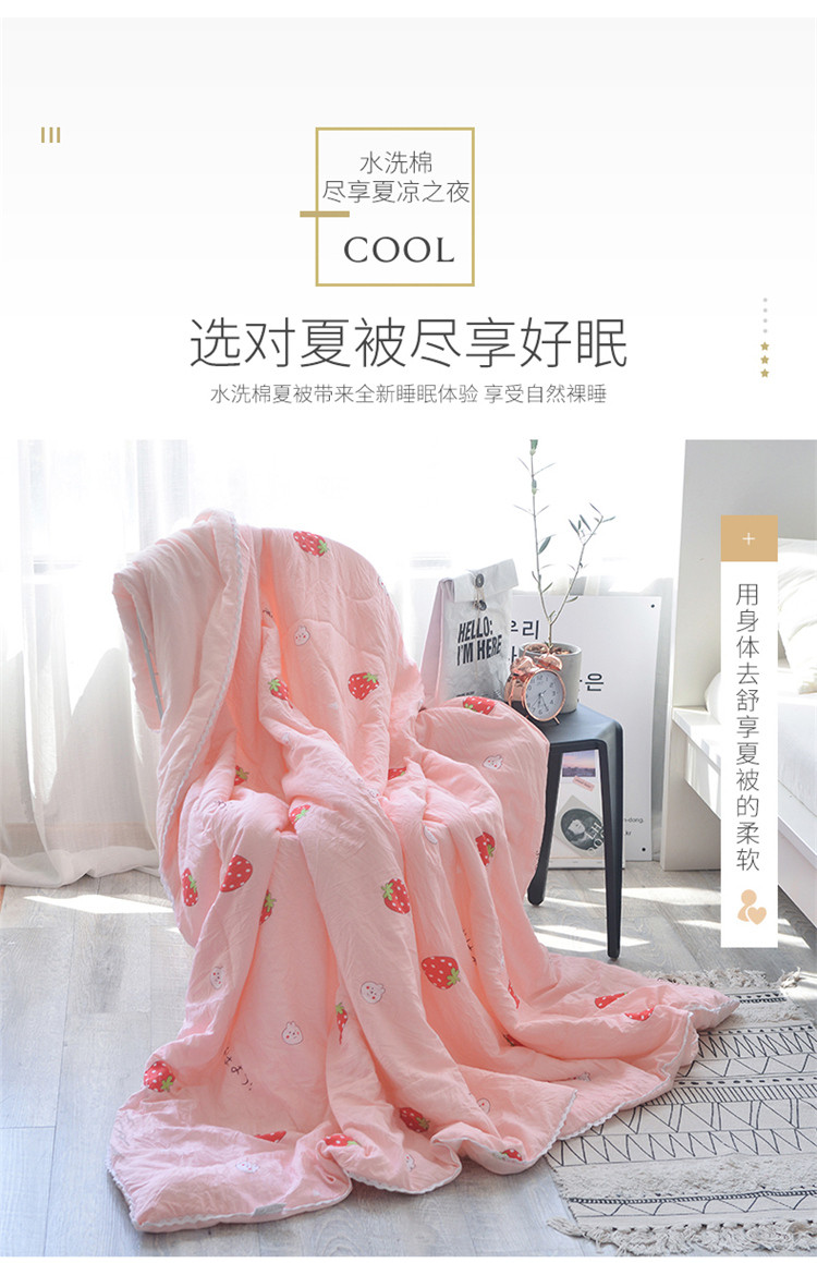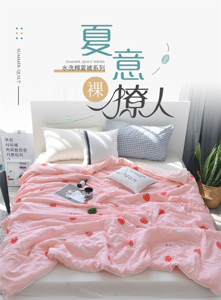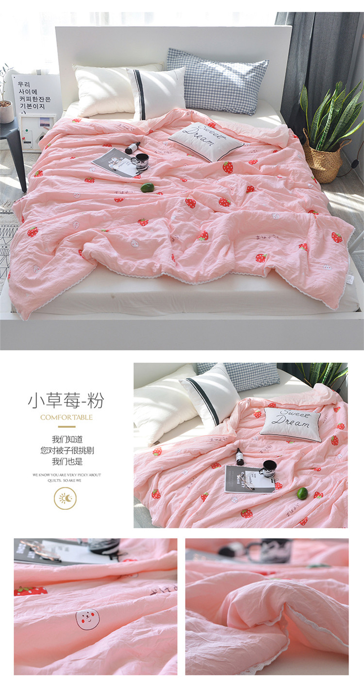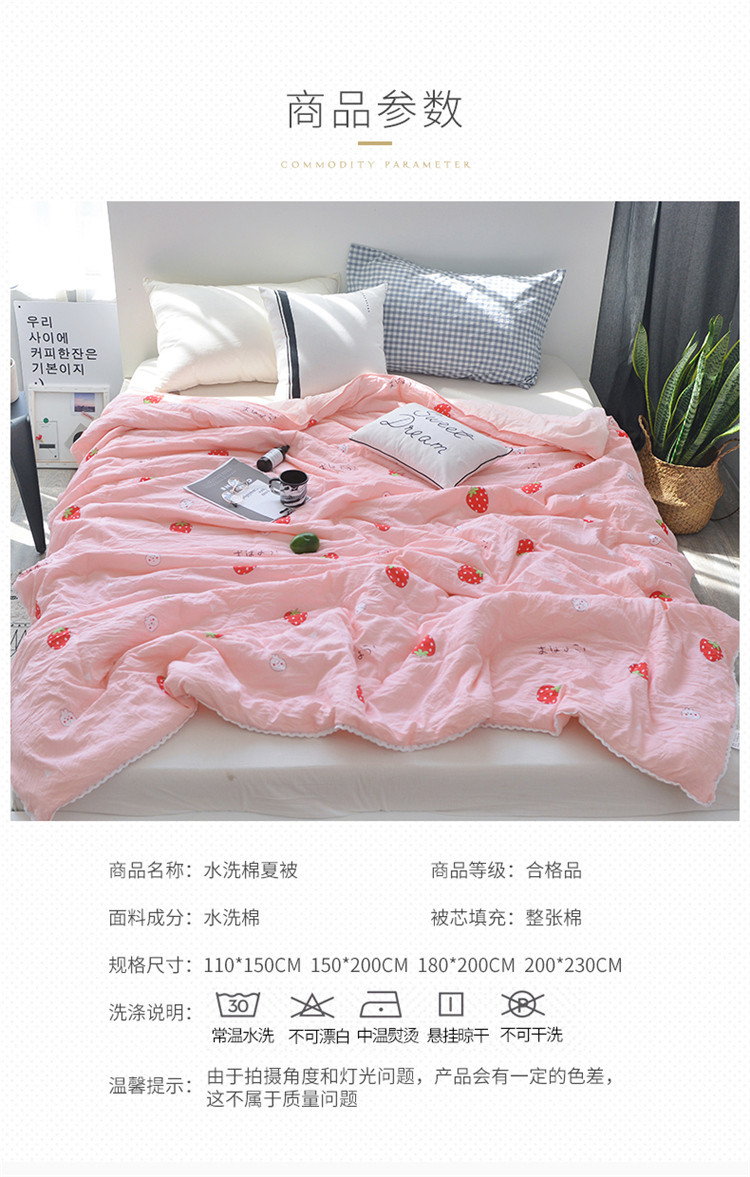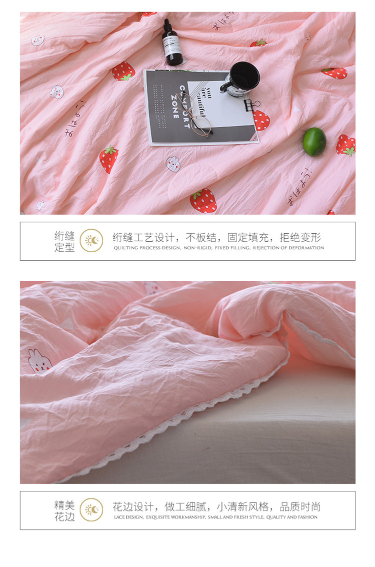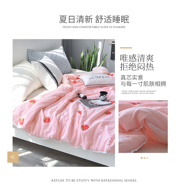 商品名称:寐居 2021新款水洗棉小花边单夏被 草莓粉