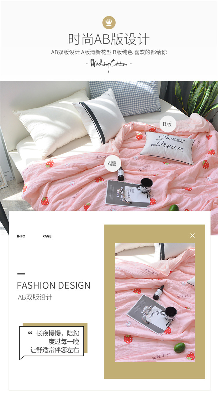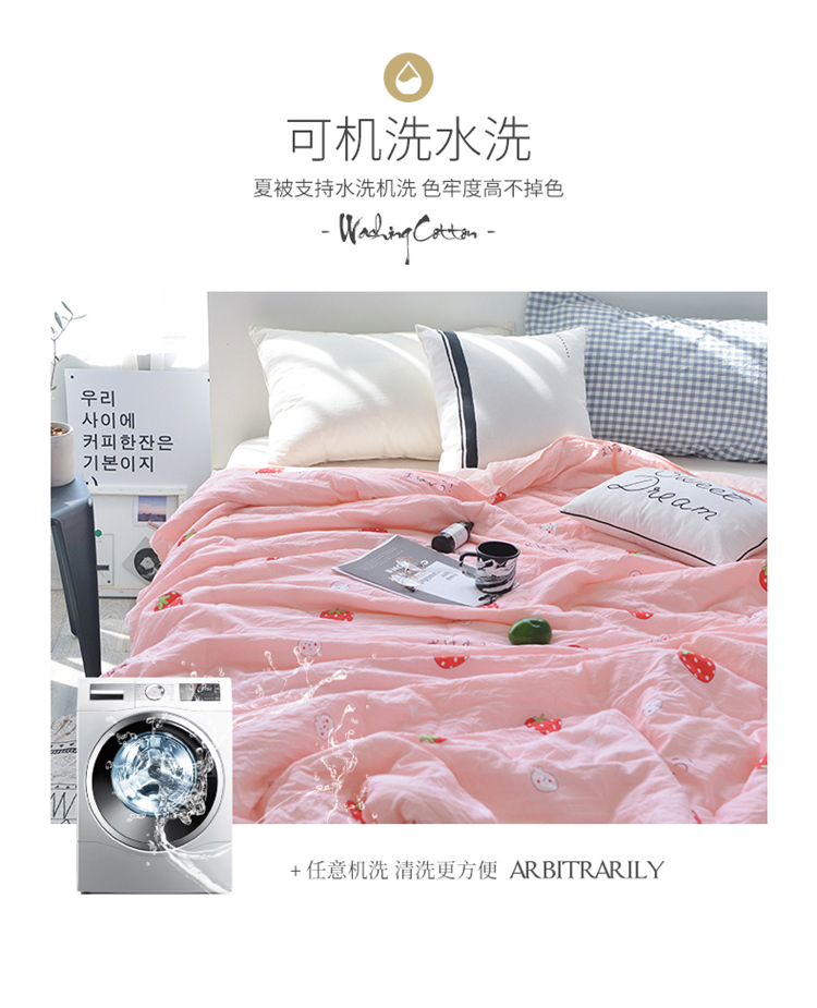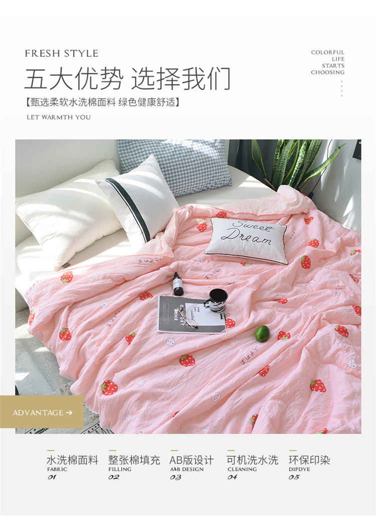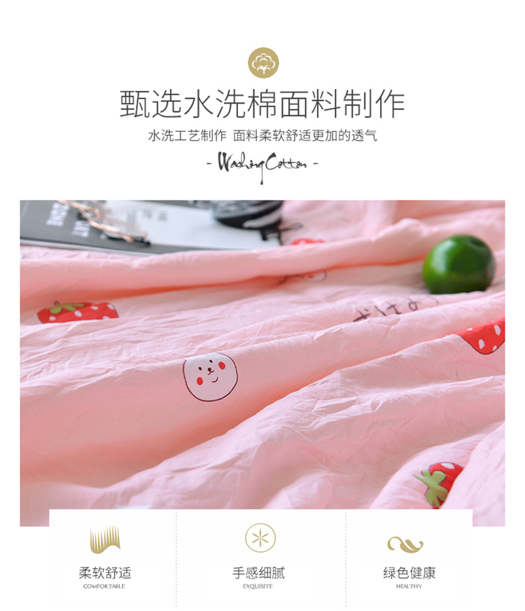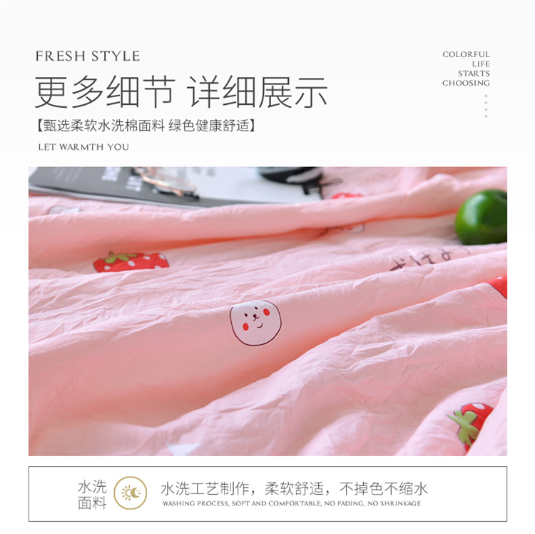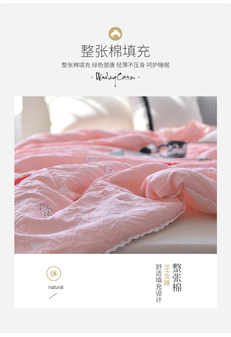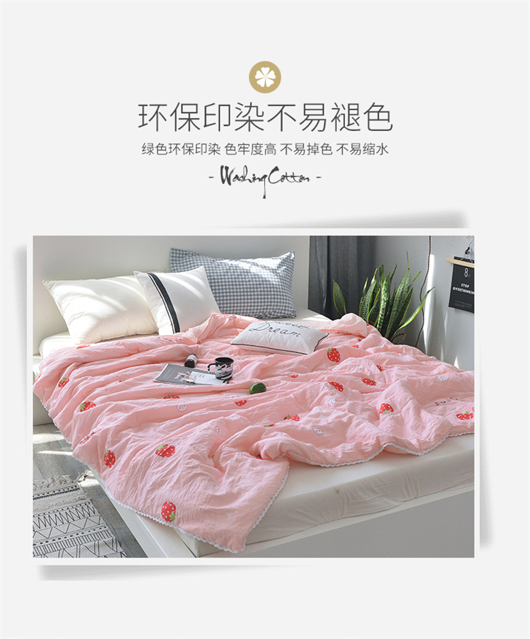 商品名称:寐居 2021新款水洗棉小花边单夏被 草莓粉