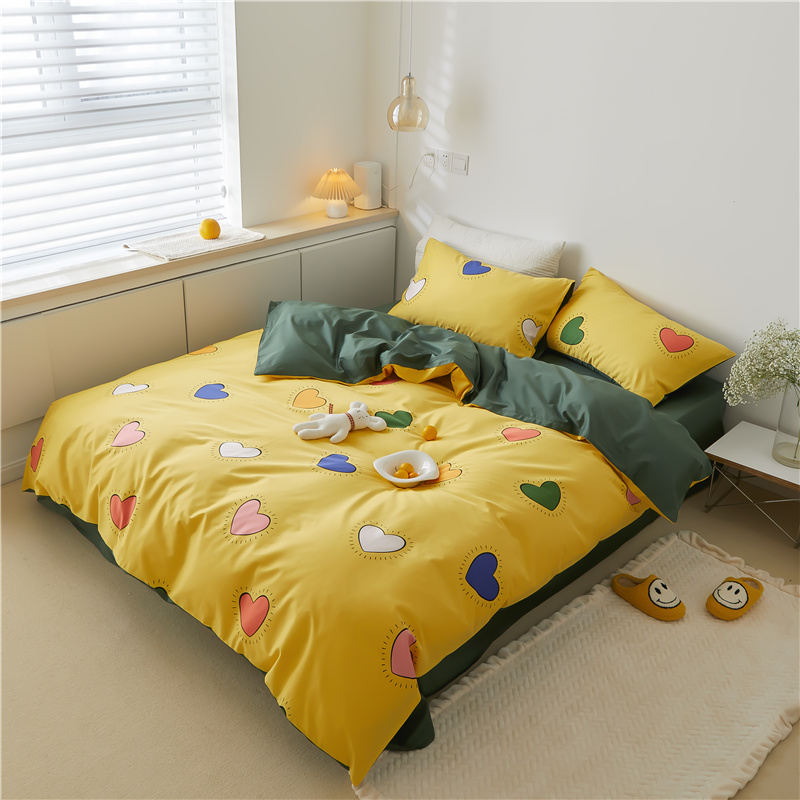 (总)优然居家纺 2025春夏新款木耳边喜字蝴蝶结小爱心复古红四件套-小欢喜,小欢喜