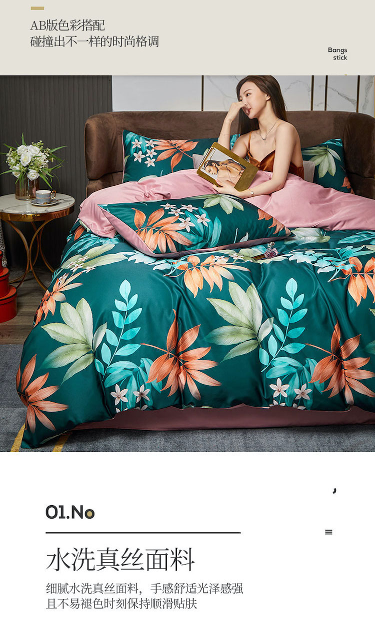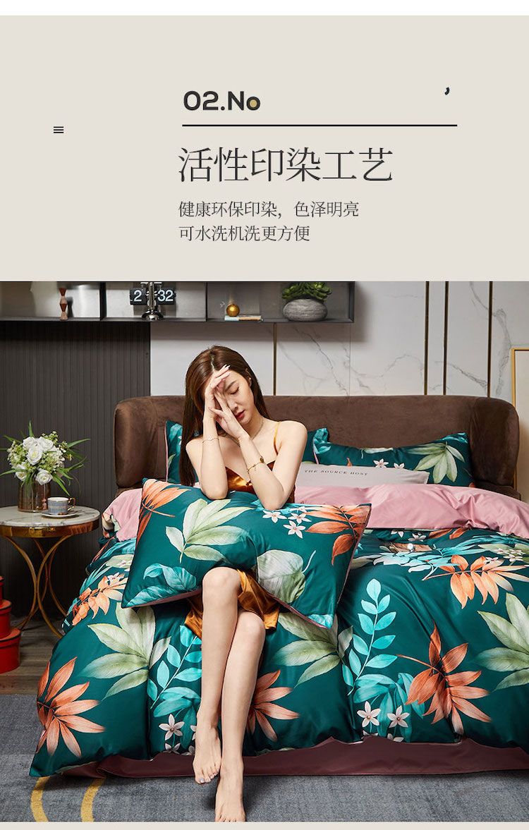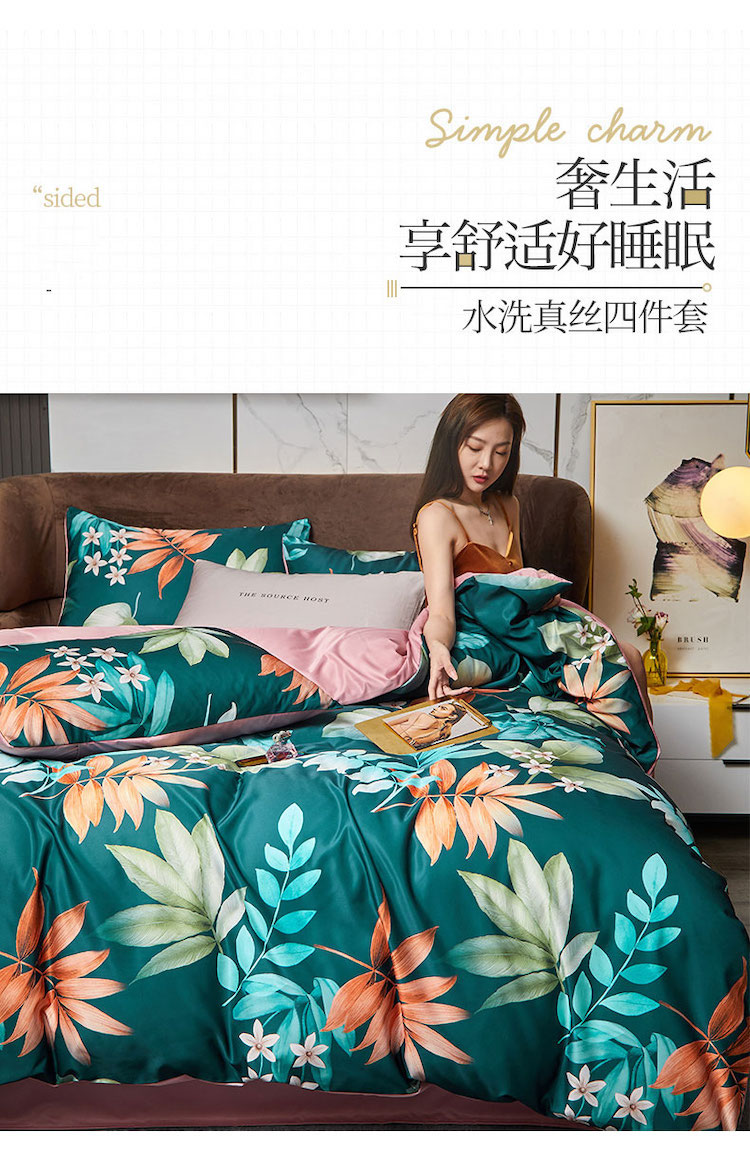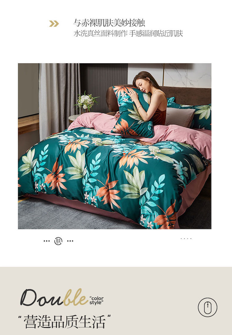 凡客 2021春夏新款60支水洗真丝数码印花四件套轻奢风系列 秋宜佳期