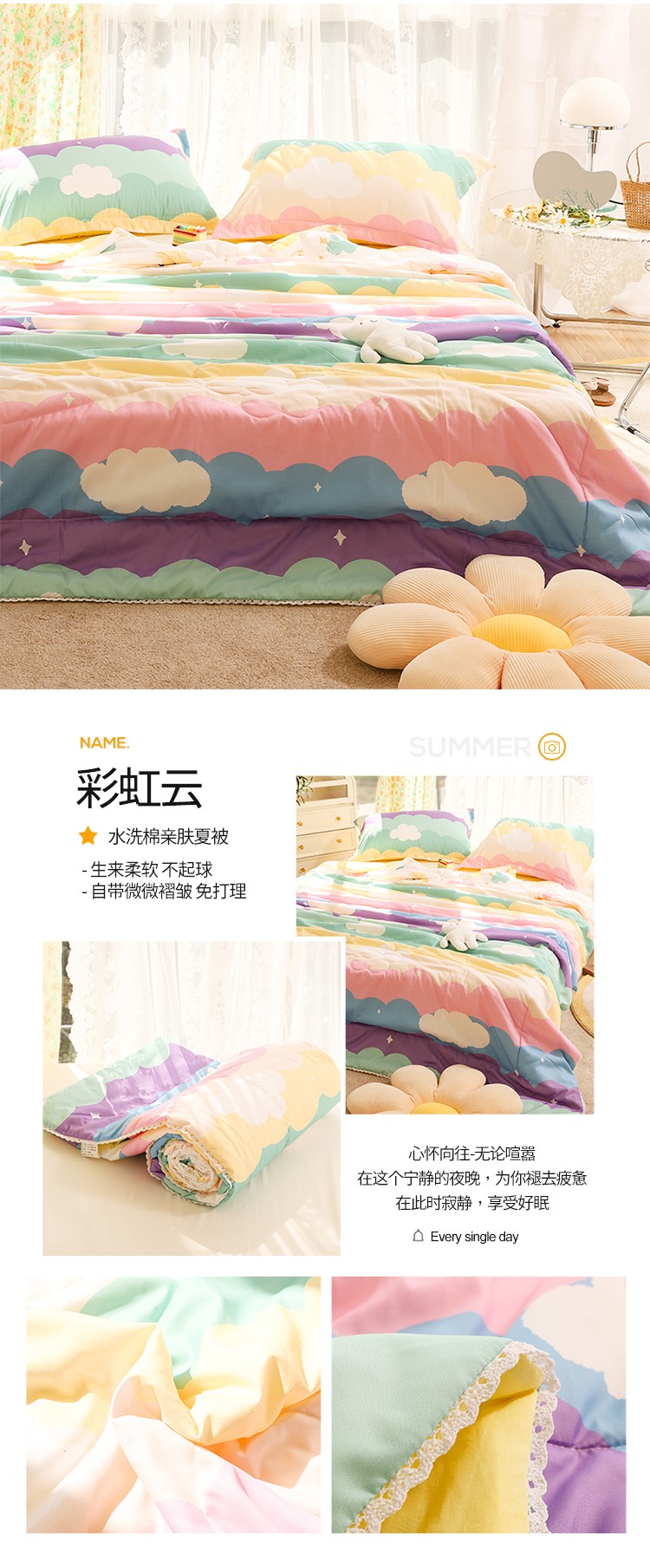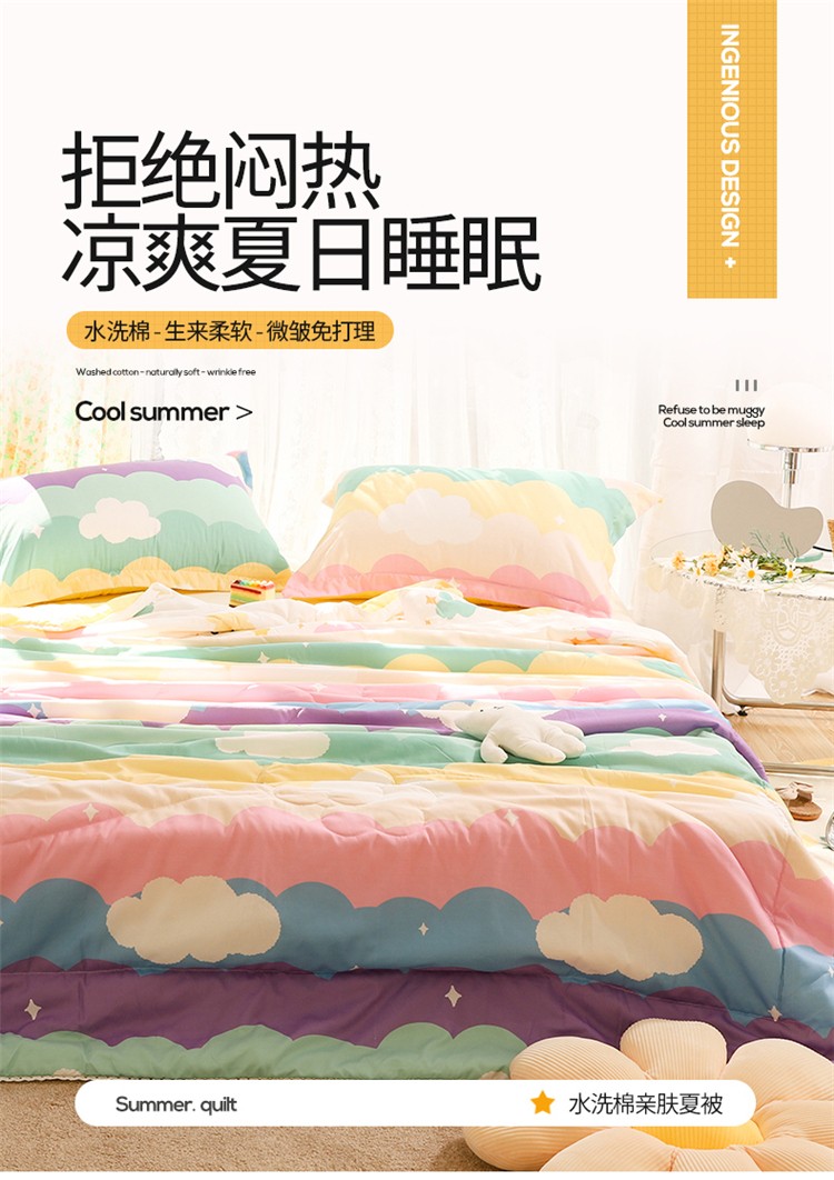 商品名称:慕尚 2025新款水洗棉夏被实拍图 彩虹云