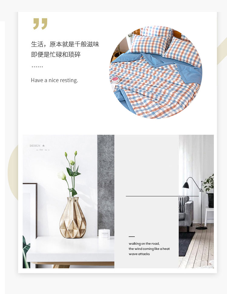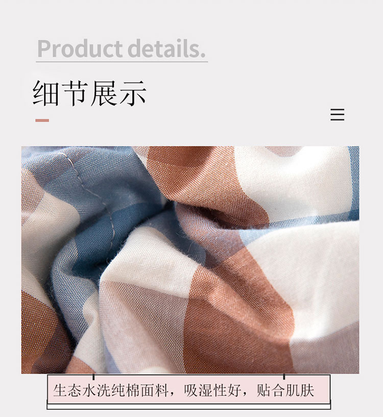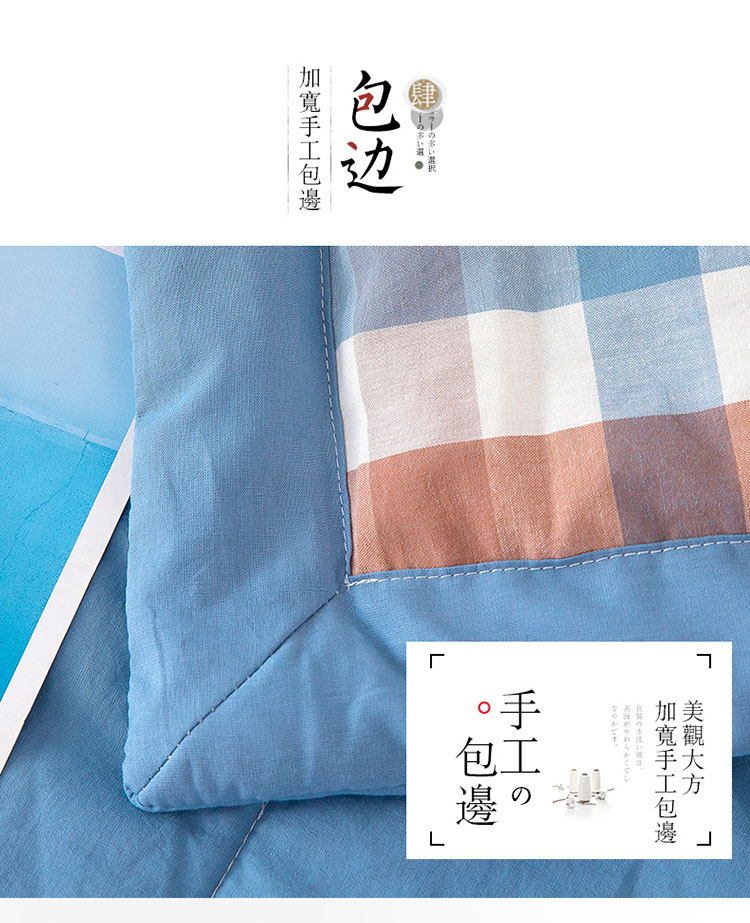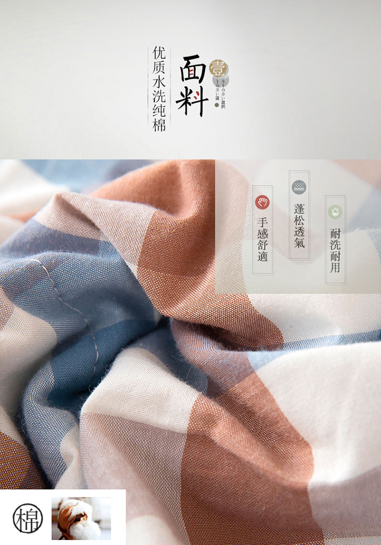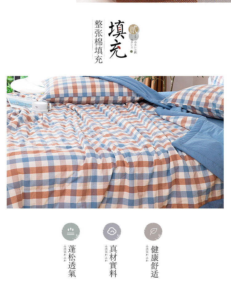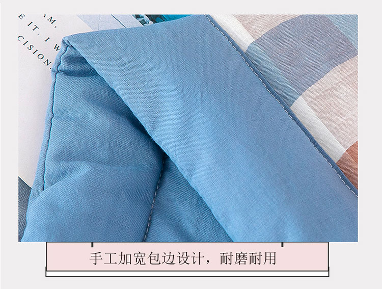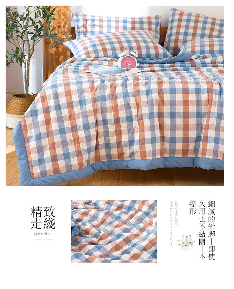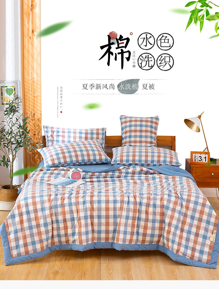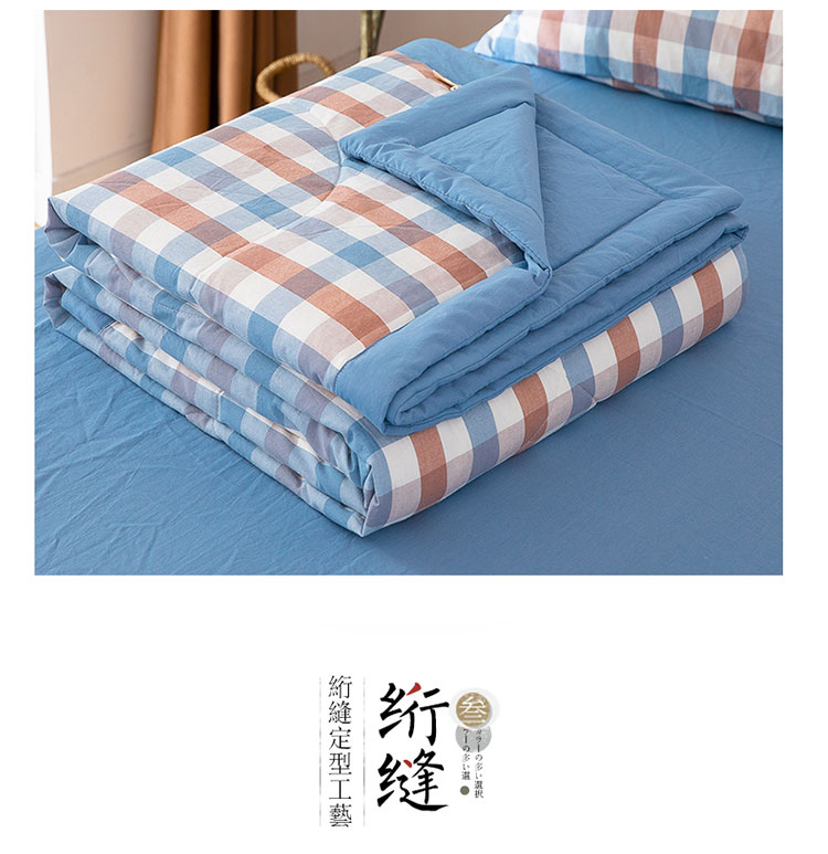 天瑜家纺 2023新款全棉色织水洗棉夏被 蓝咖中格