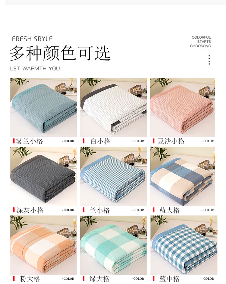 (总)天瑜家纺 2023新款全棉色织水洗棉夏被,白小格,豆沙小格,粉彩格,粉大格,粉宽条,粉小格,蓝大格,蓝咖中格,蓝宽条,蓝小格,蓝中格,绿彩格,绿大格,绿小格,深灰细条,深灰小格,雾兰小格