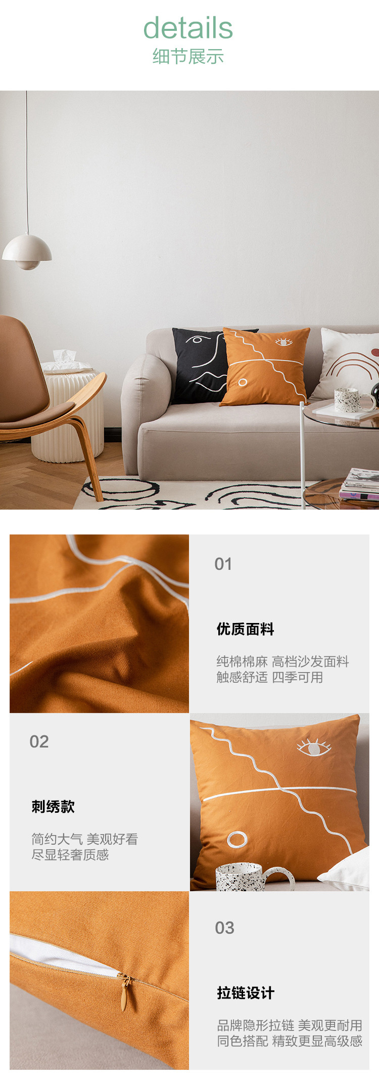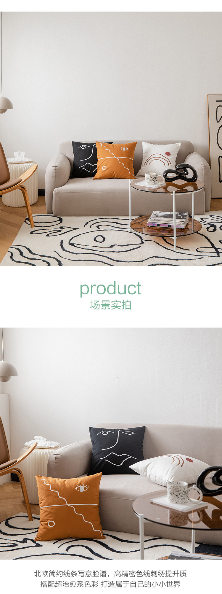 (总)美茉家居跨境电商爆款皮革帆布拼接抱枕黑白印花可拆洗靠垫,更甚,留白,有物,长物
