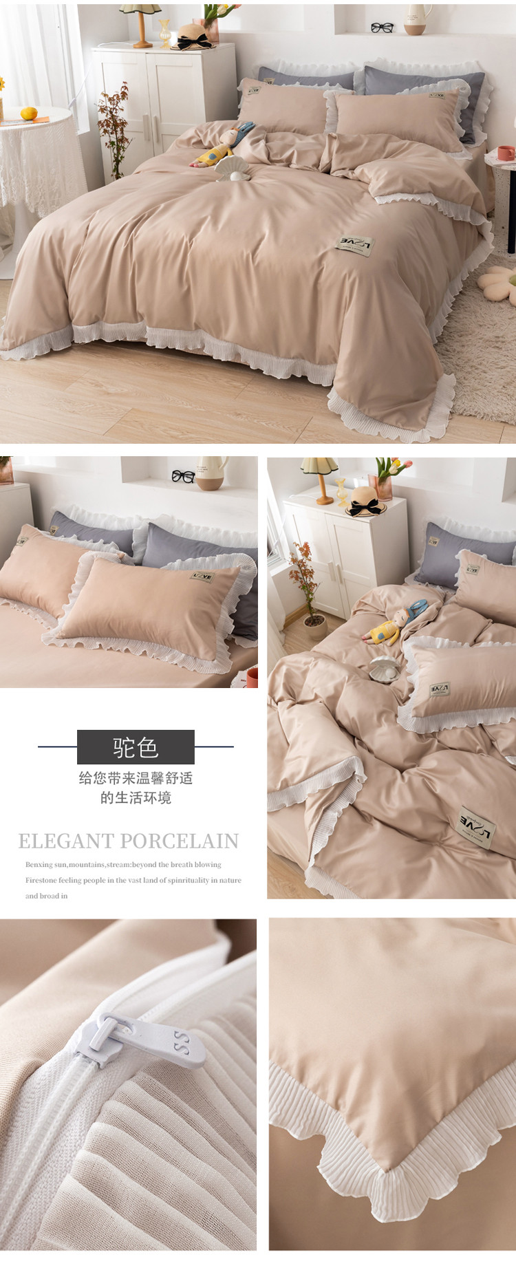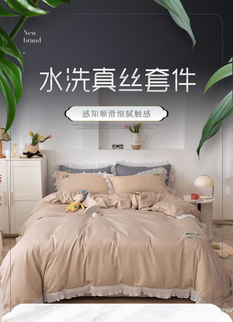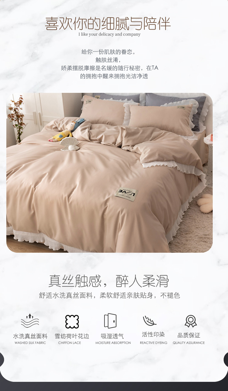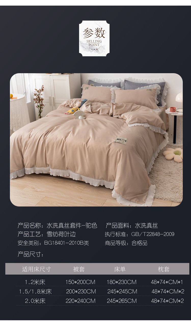 当前位置: 91家纺网 > 商品网购 > 床品套件 > 四件套 > 真丝四件套 > 二八年华 23新款水洗真丝四件套荷叶花边纯色素色 驼色