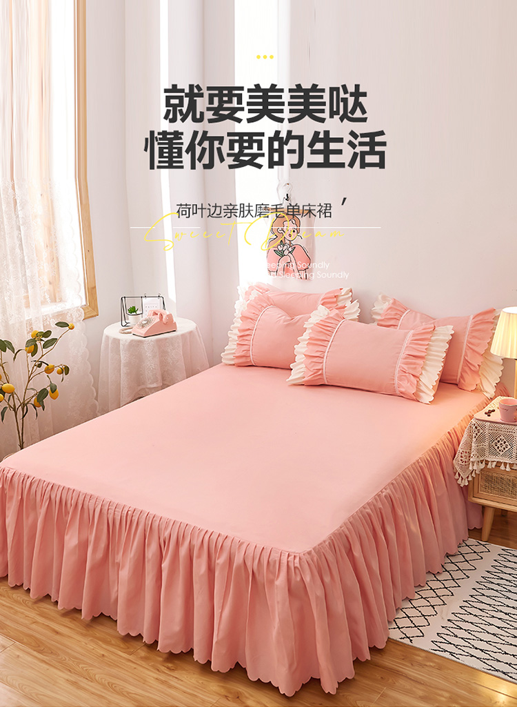 商品名称:莉莉安 2025新款荷叶边亲肤磨毛单床裙-流年系列 流年-帛玉
