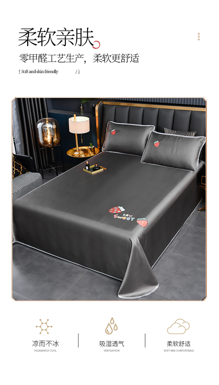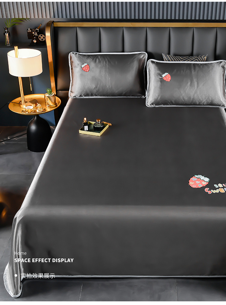 芃成家纺 2021新款冰丝凉席刺绣床单款 草莓高级灰