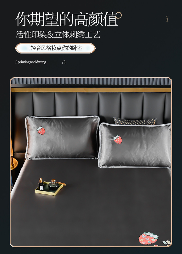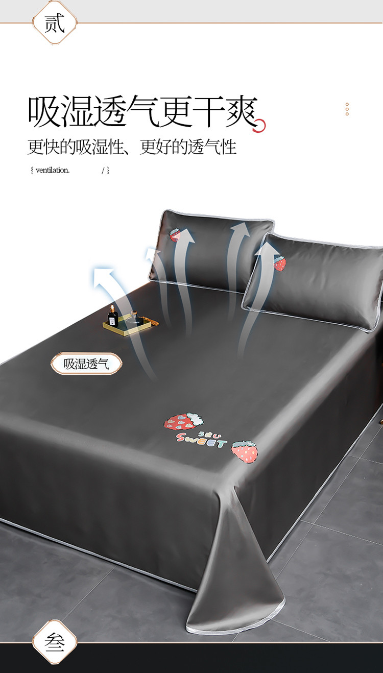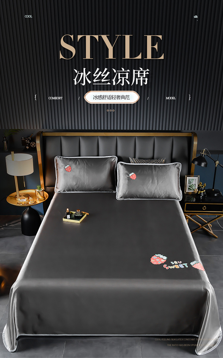 商品名称:芃成家纺 2021新款冰丝凉席刺绣床单款 草莓高级灰