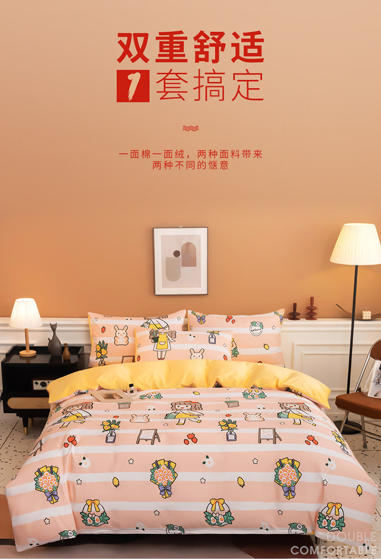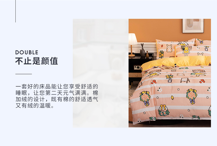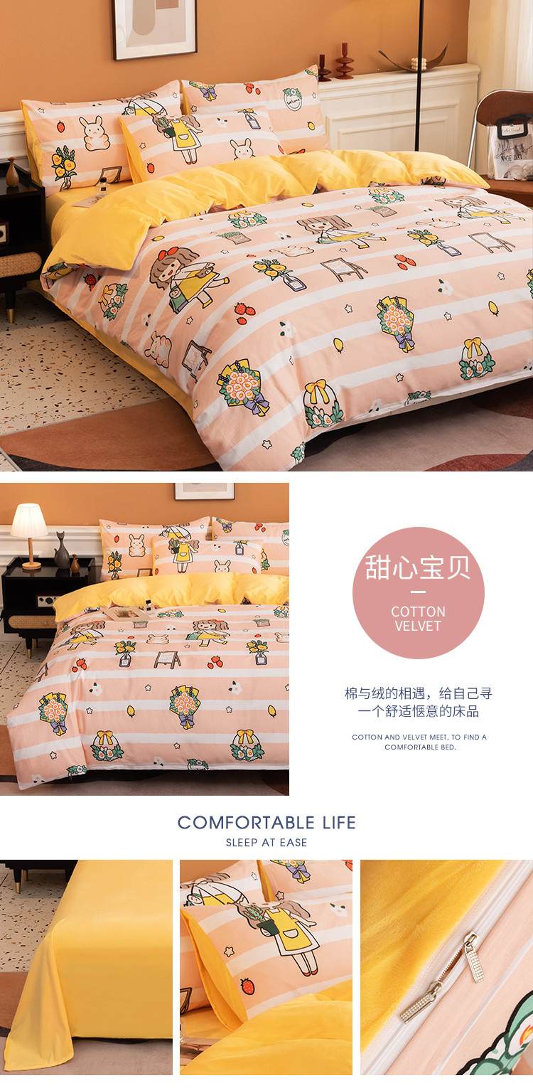 当前位置: 91家纺网 > 商品网购 > 床品套件 > 四件套 > 全棉普通四件套 > 芃成家纺 2021新款棉加绒四件套 甜心宝贝