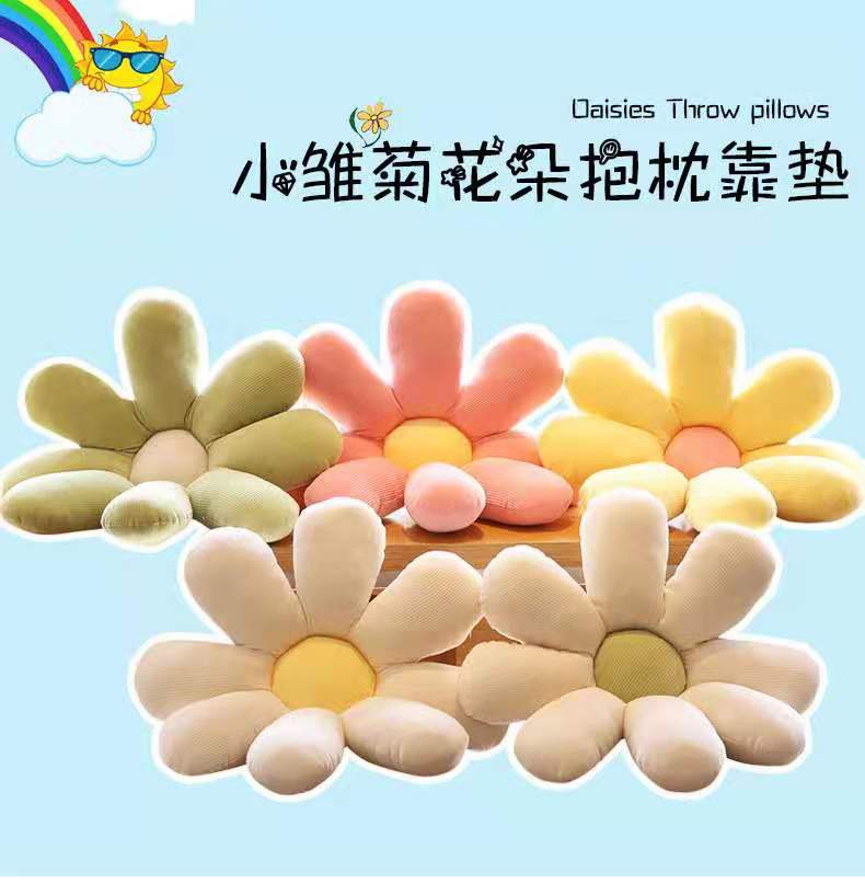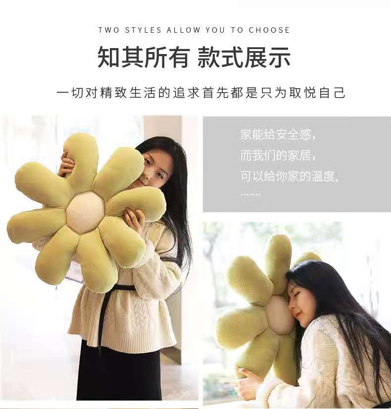 商品名称:枕芯真意 2023新款小雏菊花朵抱枕靠枕坐垫 绿心米黄色