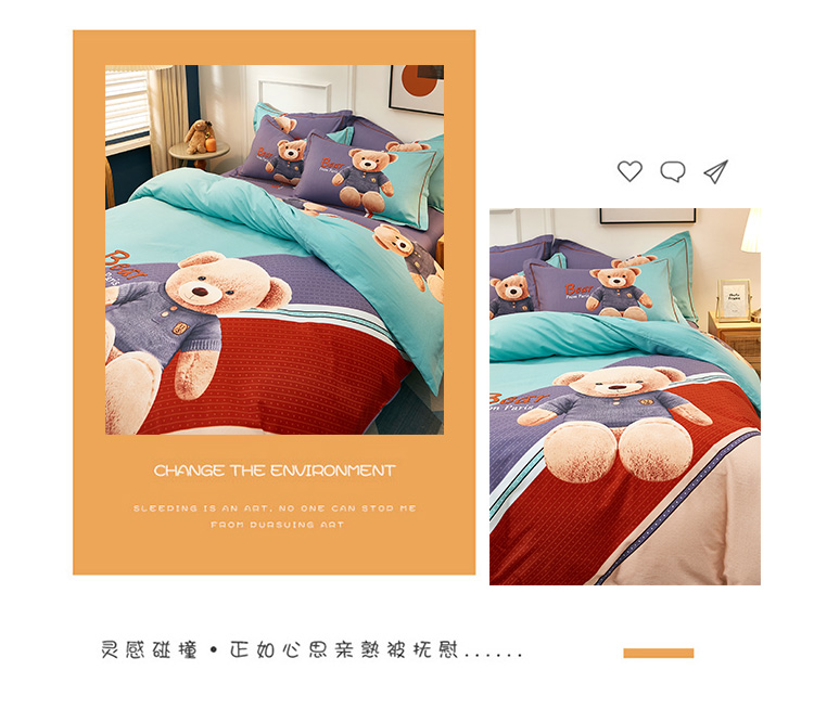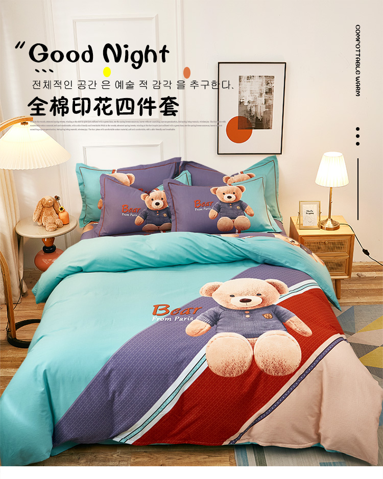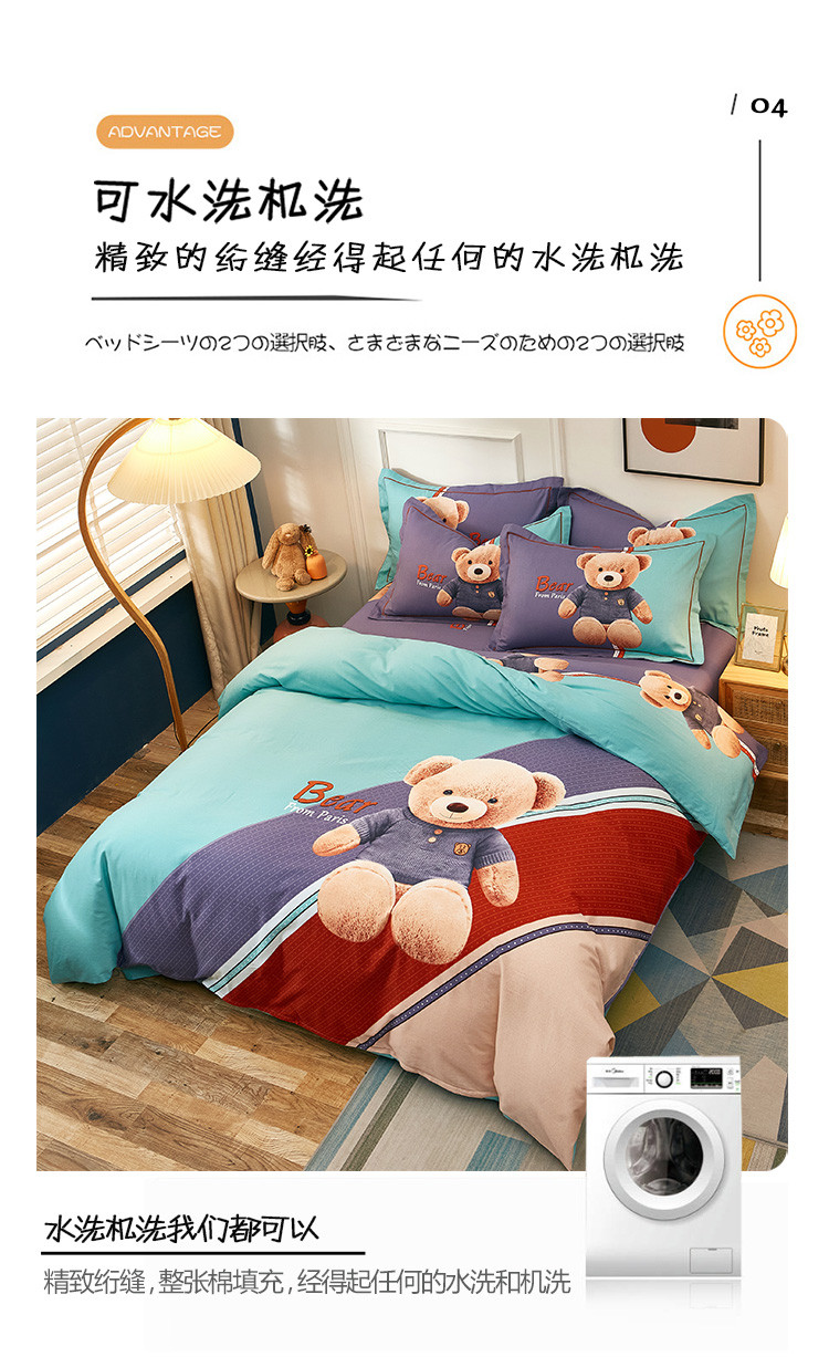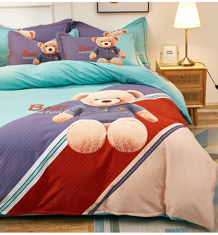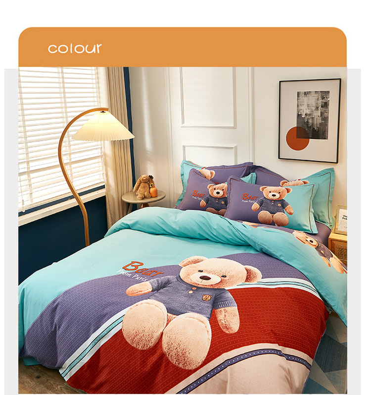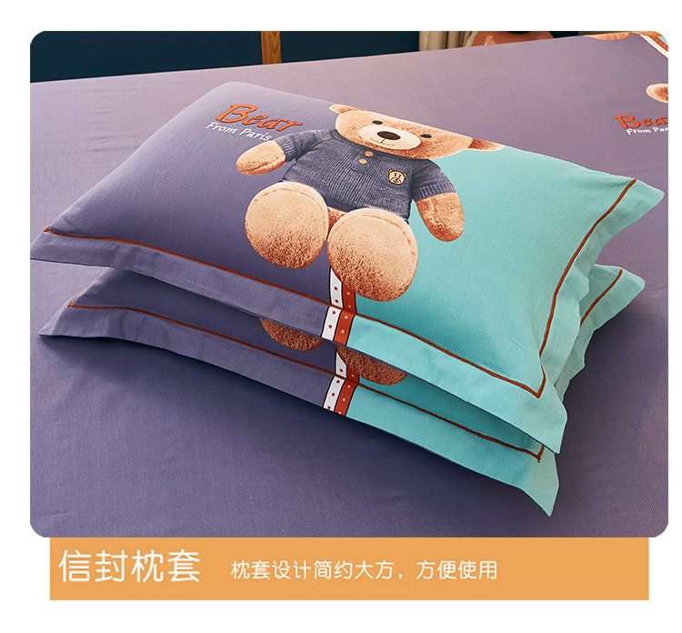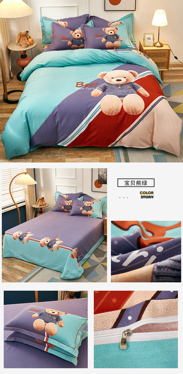 雲归梦2021全棉大版生态磨毛四件套卡通花型第1批 宝贝熊绿