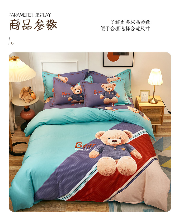 商品名称:雲归梦2021全棉大版生态磨毛四件套卡通花型第1批 宝贝熊绿