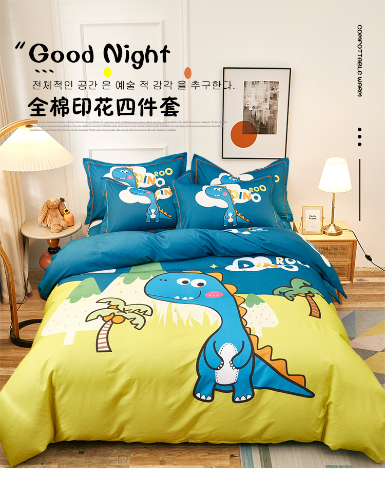 雲归梦2021全棉大版生态磨毛四件套卡通花型第1批 恐龙森林