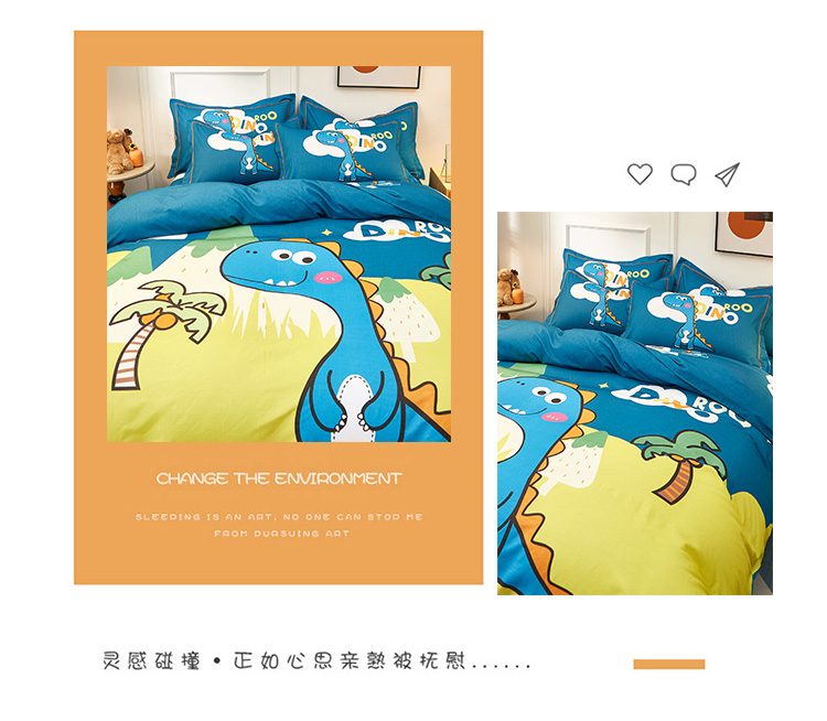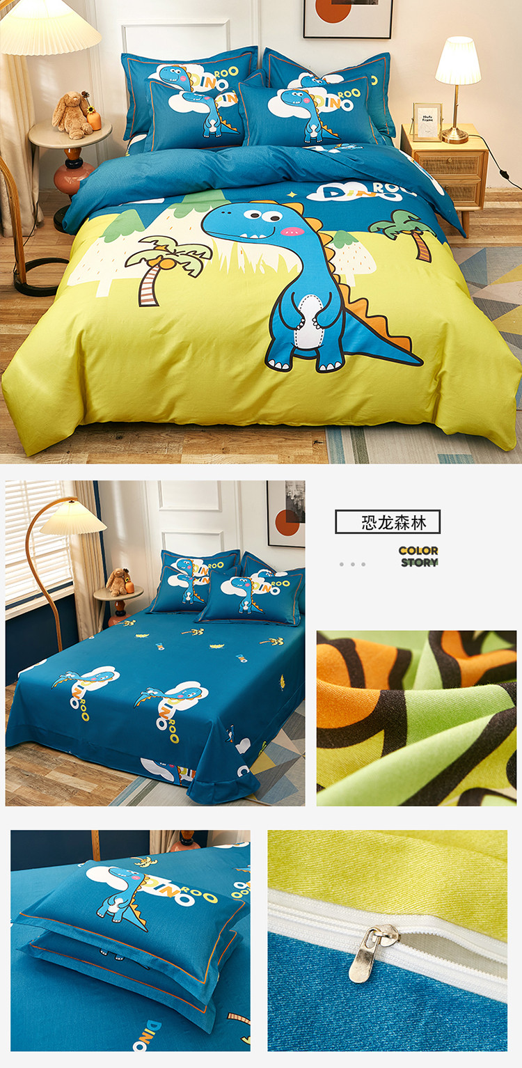 商品名称:雲归梦2021全棉大版生态磨毛四件套卡通花型第1批 恐龙森林
