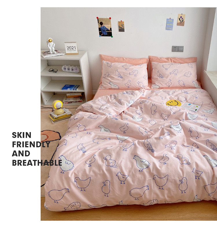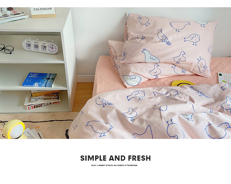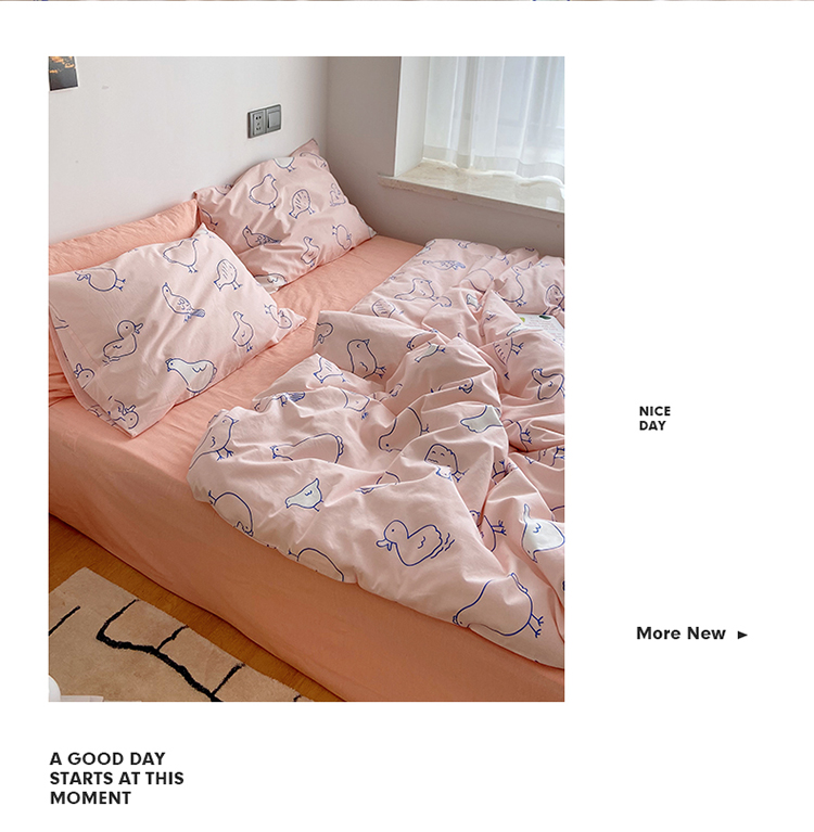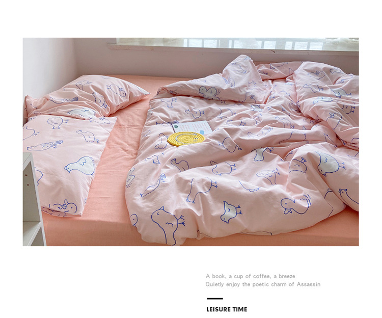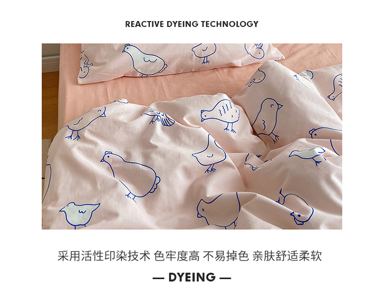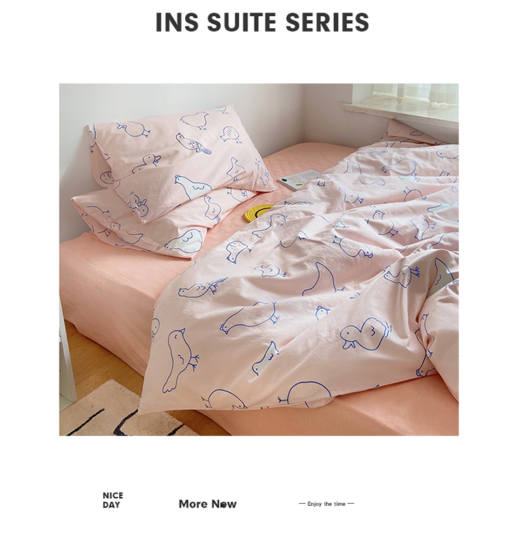 当前位置: 91家纺网 > 商品网购 > 床品套件 > 四件套 > 全棉普通四件套 > 尺素 纯棉ins印花水洗棉卡通可爱全棉被套纯色床单四件套 可爱小鸡粉
