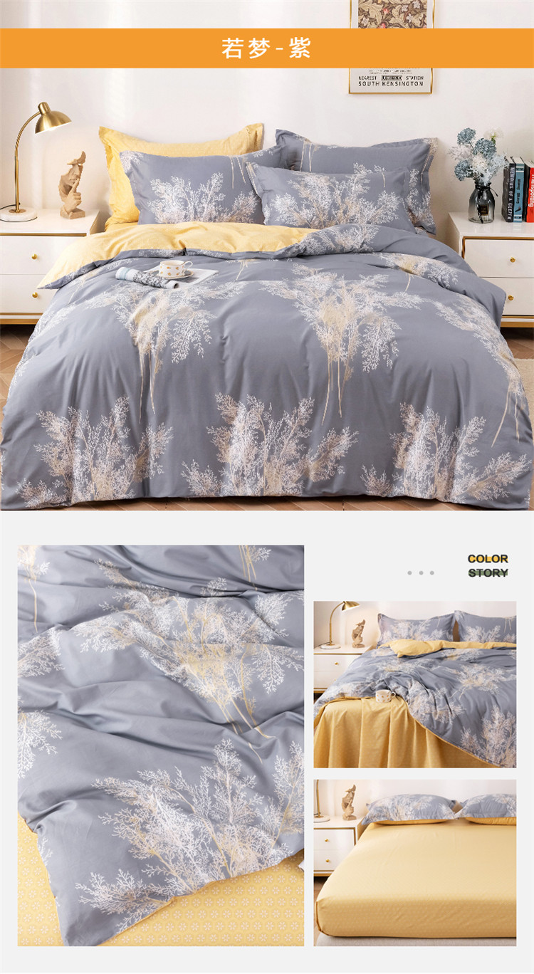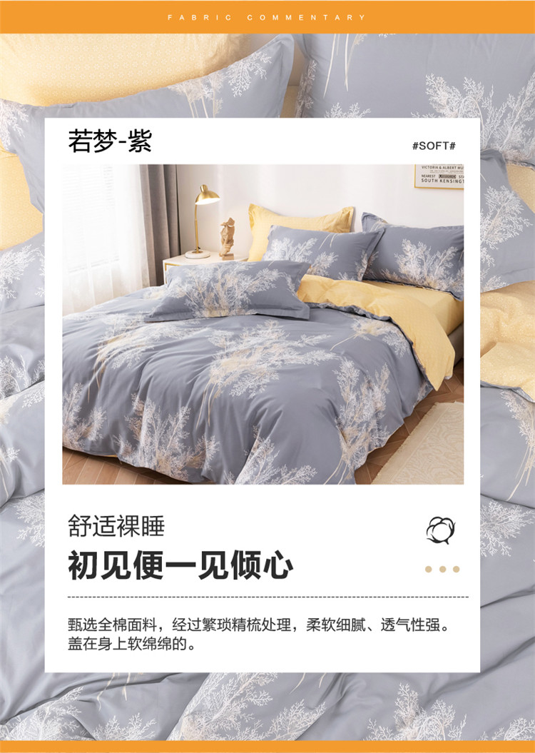 星期三家纺 2021新款8月铂金全棉13372四件套(加老板微信有会员价) 若梦-紫