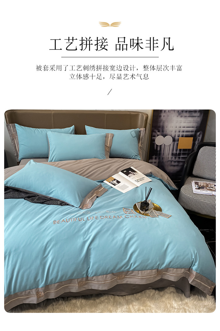 (总)拼社家纺 2025新款母婴及全棉水洗棉刺绣四件套纯棉床上用品,艾玛绿+卡其,繁星蓝+卡其,繁星蓝+玫瑰粉,红豆沙+雅灰,迷雾灰+玫瑰粉,蜜粉+雅灰,奶油白+卡其,奶油白+香橙,牛仔蓝+浅蓝,香橙+雅灰